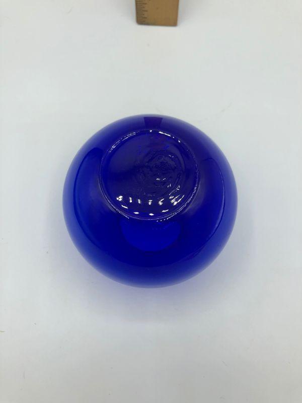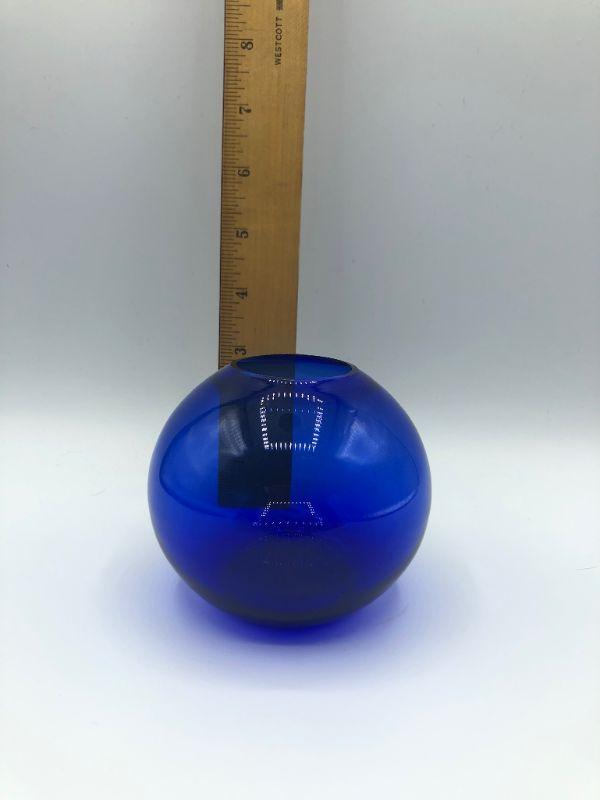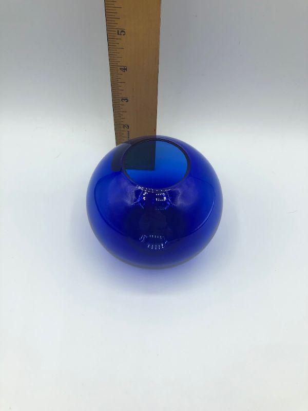 Brilliant blue glass orb vase. Good condition. 3" size.