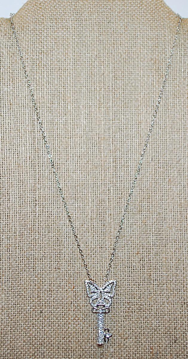 Brilliant Cluster Stones Butterfly Styled KEY PENDANT 1½" x ¾" on a Silver Tone Necklace Chain 17" L