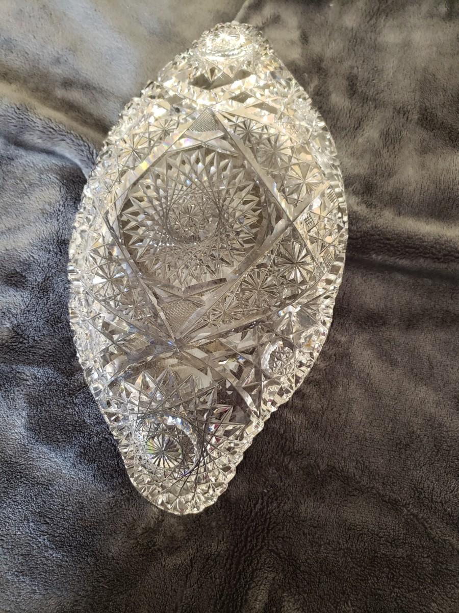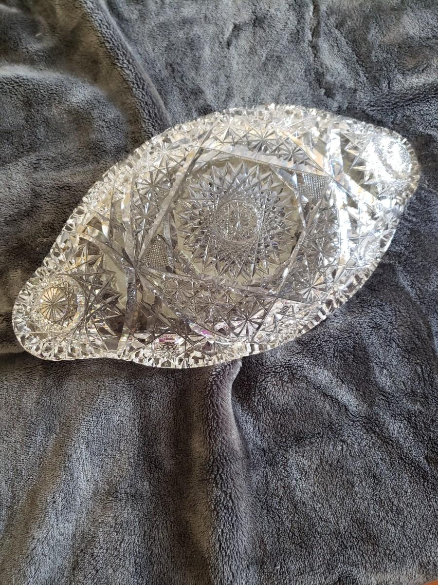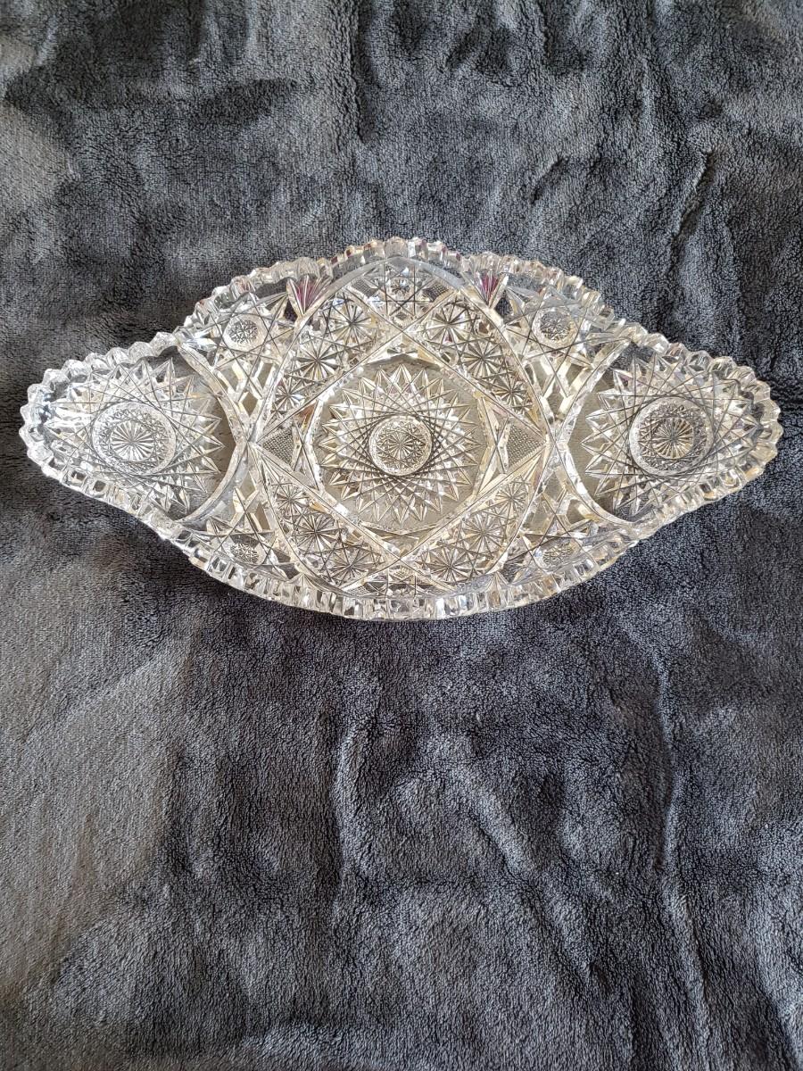 Vintage Brilliant cut crystal oval serving dish. 14" x 7.5".