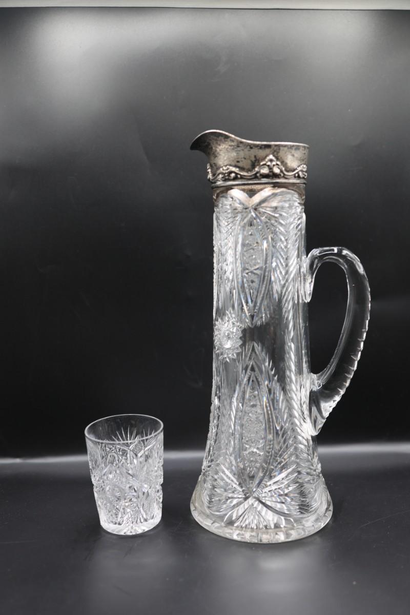 Brilliant Cut-Glass Pitcher and Cup (See Details)