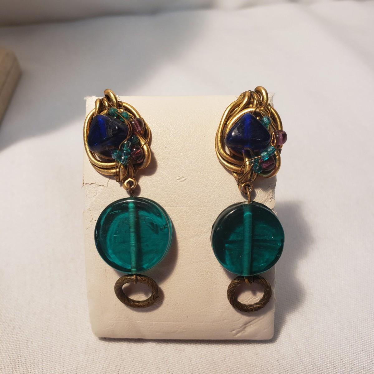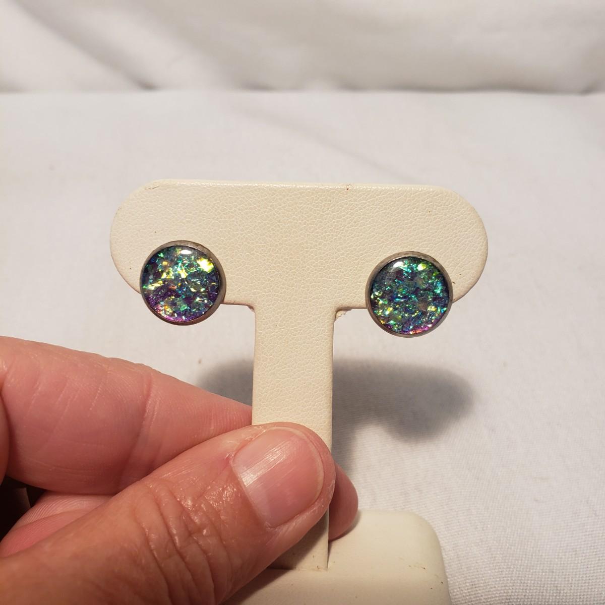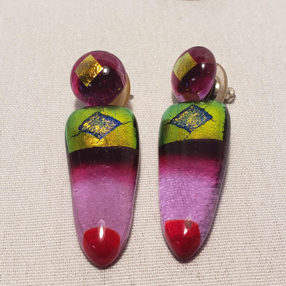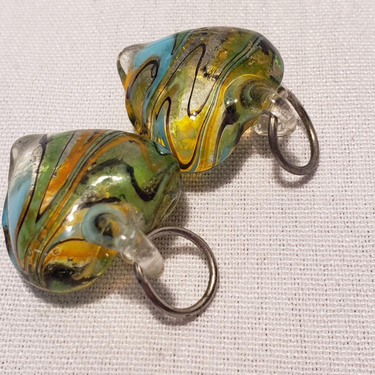This brilliant 21 piece lot of glass themed jewelry has everything you need, from rings, necklaces, earrings and pendants. The orange hued stained glass round necklace measures 16". The one ring in this lot is marked with sterling silver base and a multiple colored glass feature. Some earrings have backings, while others don't, see pictures.