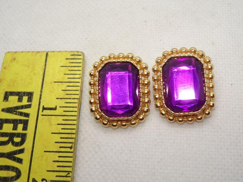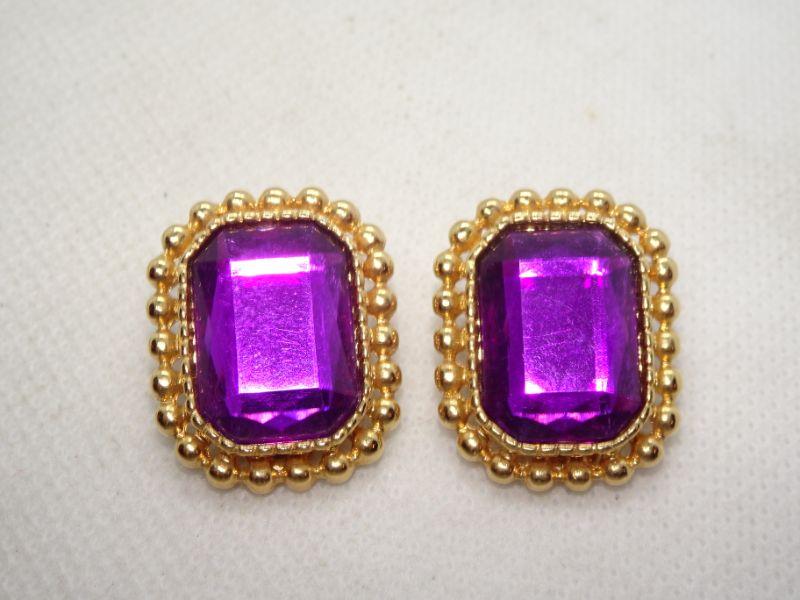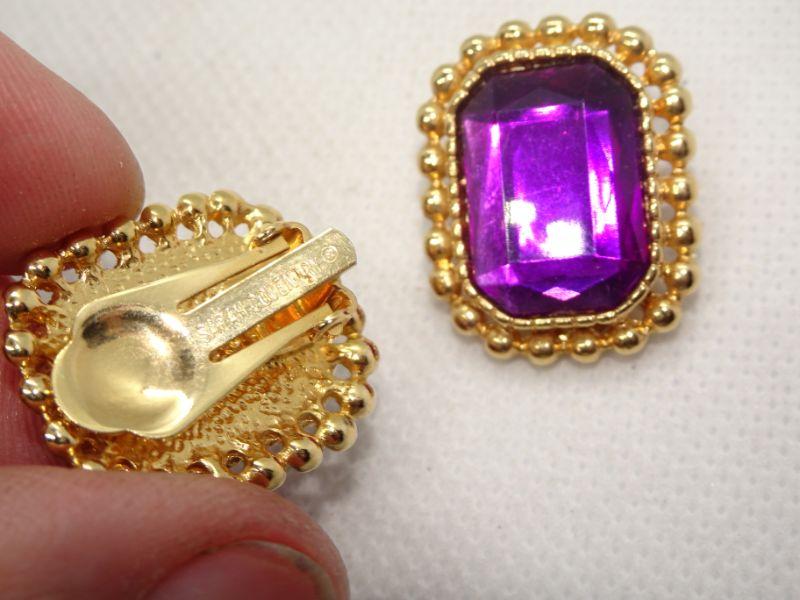 Brilliant Purple Sarah Coventry Clip Earrings, Gold Tone