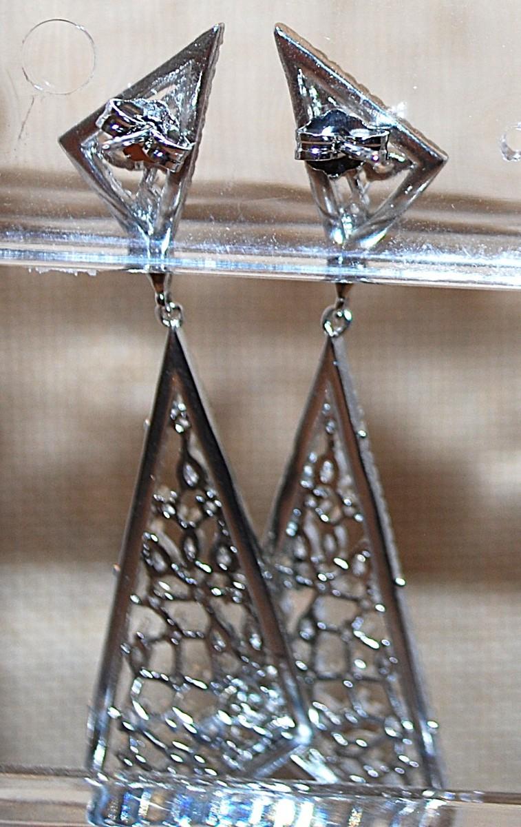 Brilliant Stones Double Triangle Dangle Earrings Set (2½") with a Stud Style Clasp