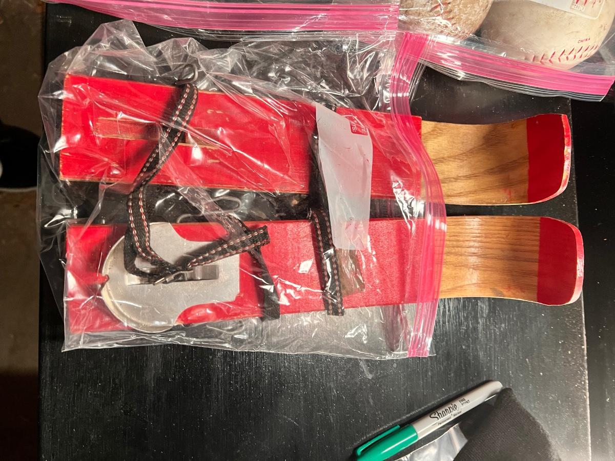 Softballs, baseballs, and I’m not sure what these vintage ski type things are, maybe you do!?