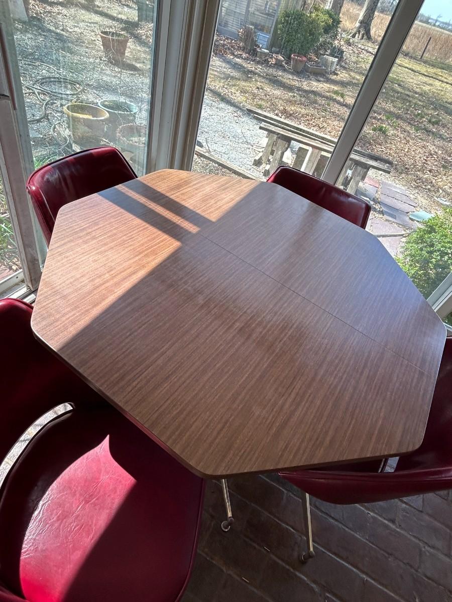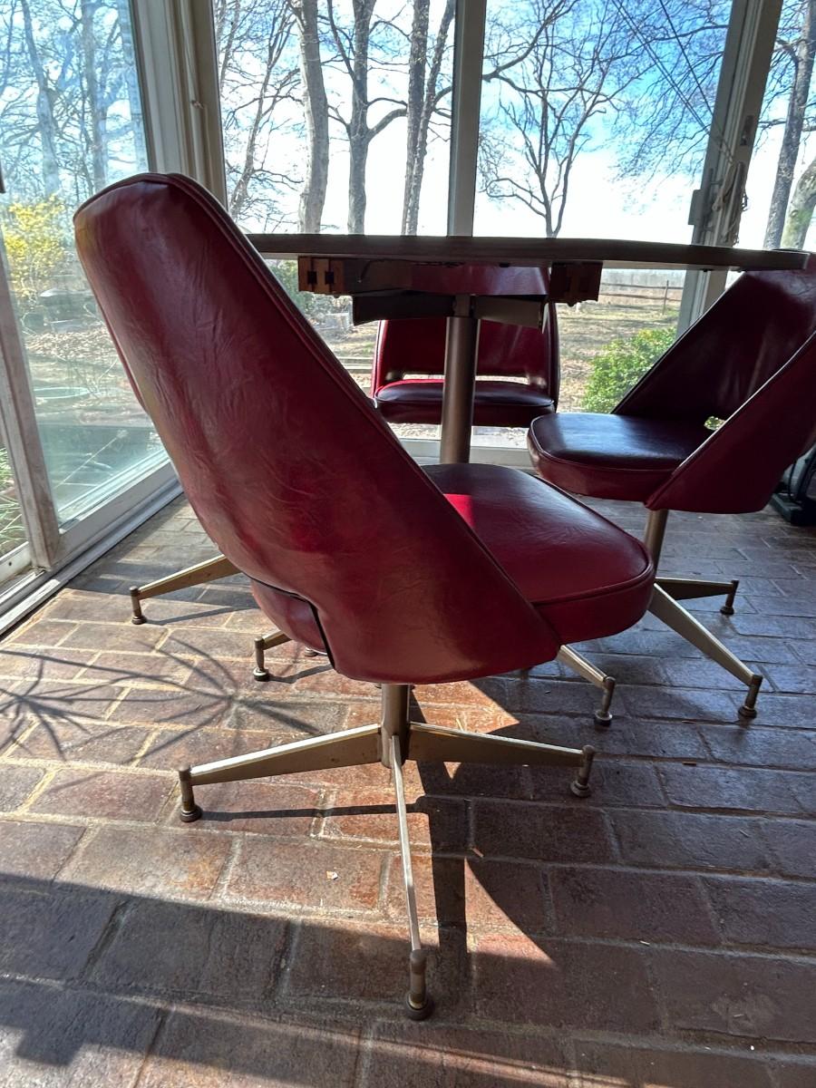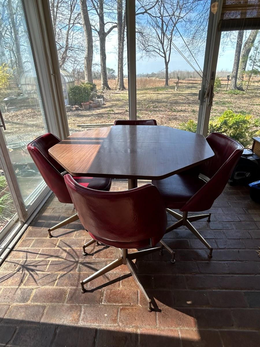 I'm sure this amazing vintage table and chairs has stories of card games gone bad. Tales of sore losers flipping the table and chips flying, beer being spilled and lit cigarettes threatening to start the shag carpet on fire. Or, maybe it brings back memories of breakfasts with bacon and freshly squeezed orange juice. Either way, this incredible set will bring joy and years of smiles to the winning bidder.