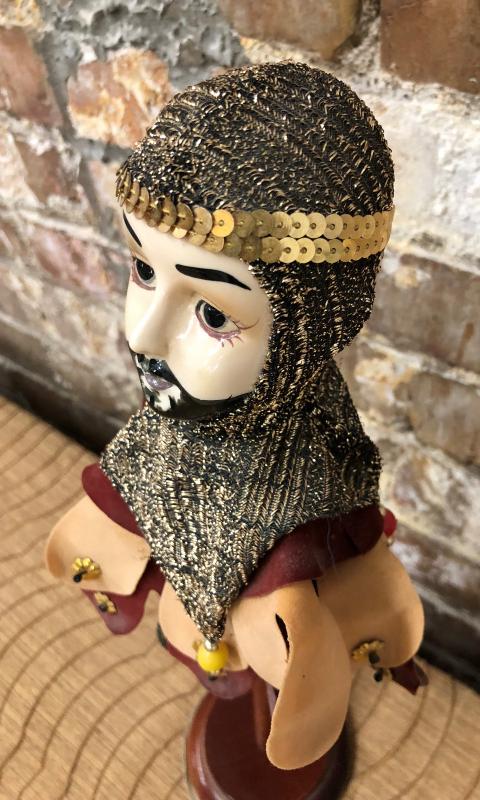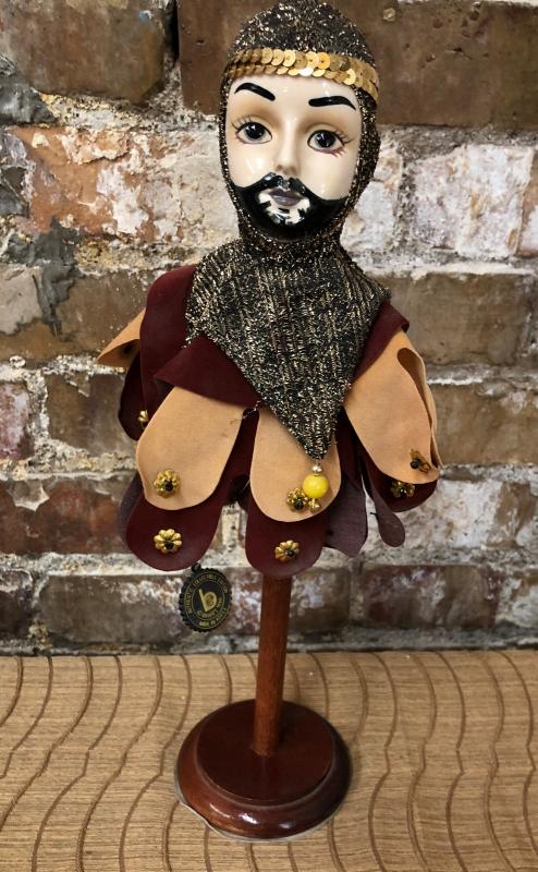 Very good condition on this Medieval Court Jester figure...on a wooden stand...14in high...Circa 1986...