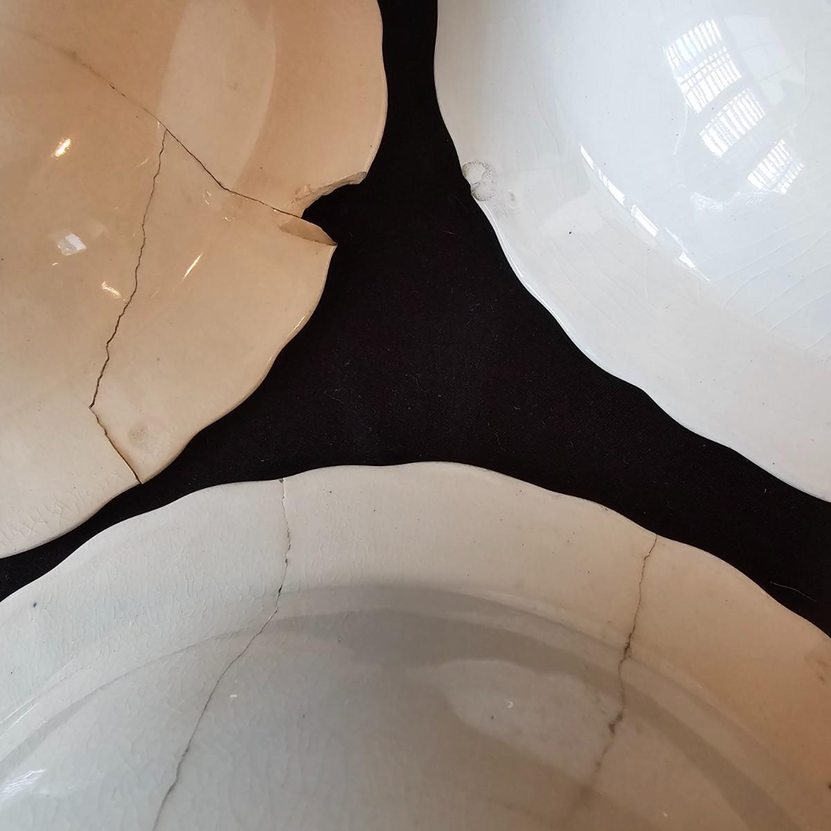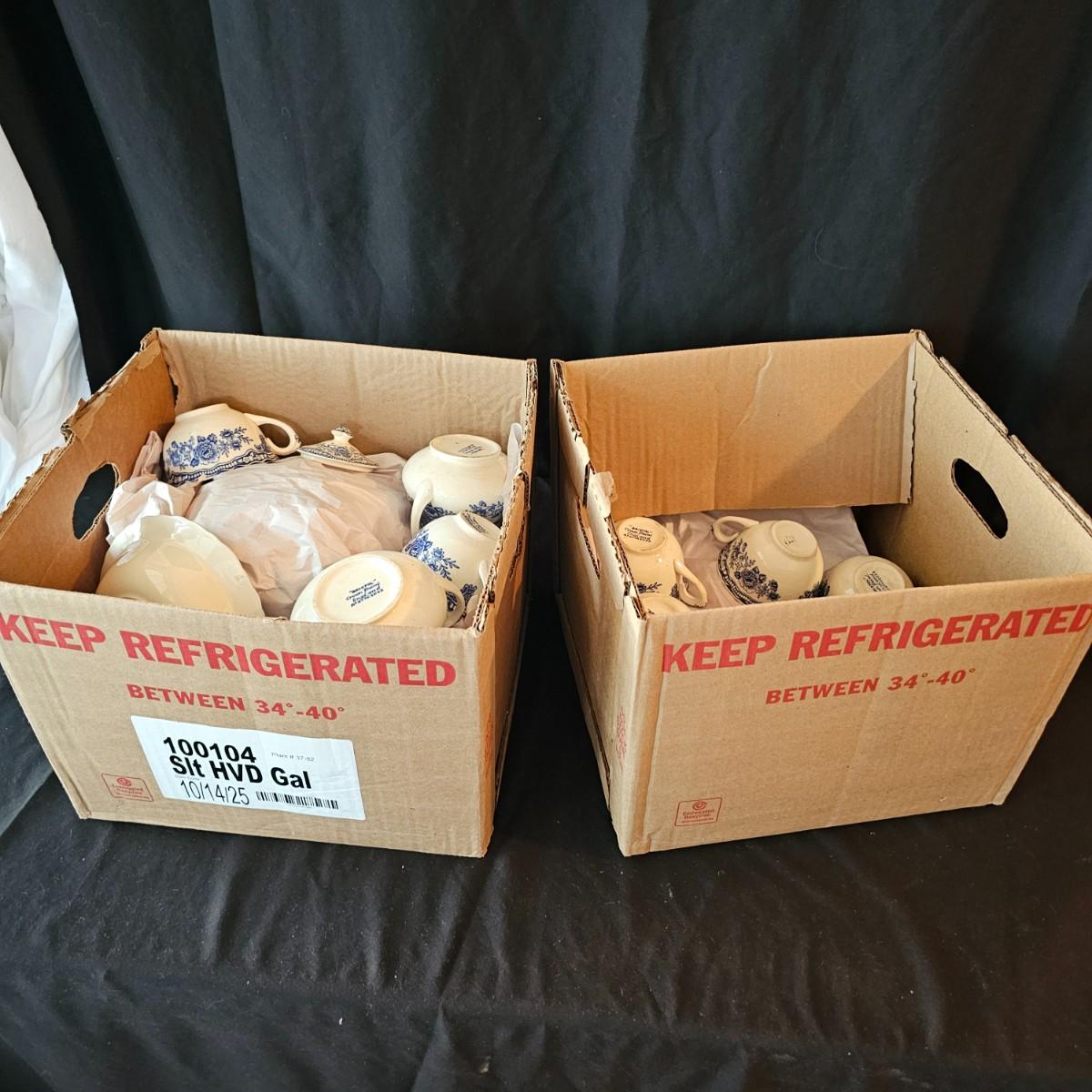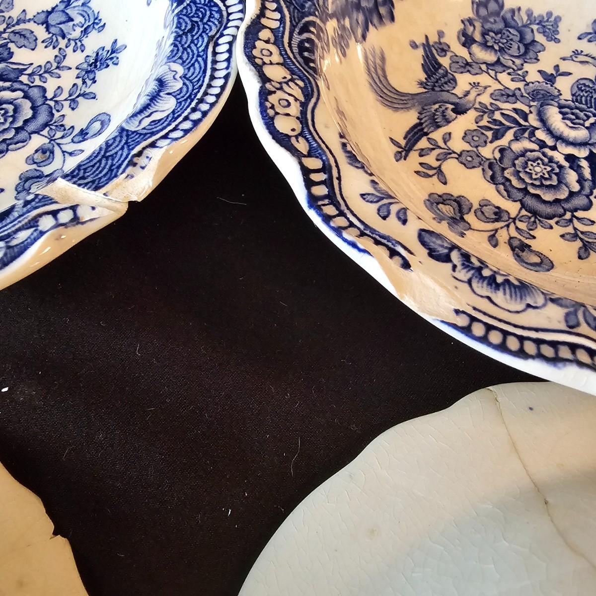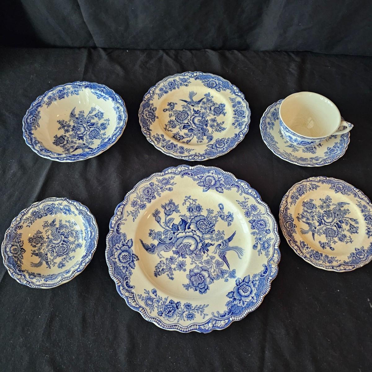 Over 60 pieces of this English china in the 'Bristol' Crown Ducal pattern. Plates, bowls, cups, saucers, serving bowls and more. There are different amounts of pieces on some of these. A number of items have cracks, chips and/or breaks. Please note items in end of photos for damages. See photos for details. Local pickup only.