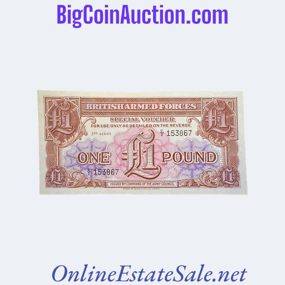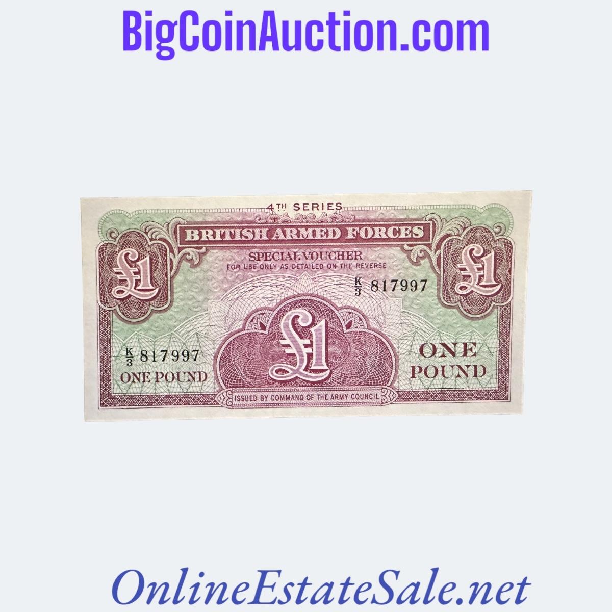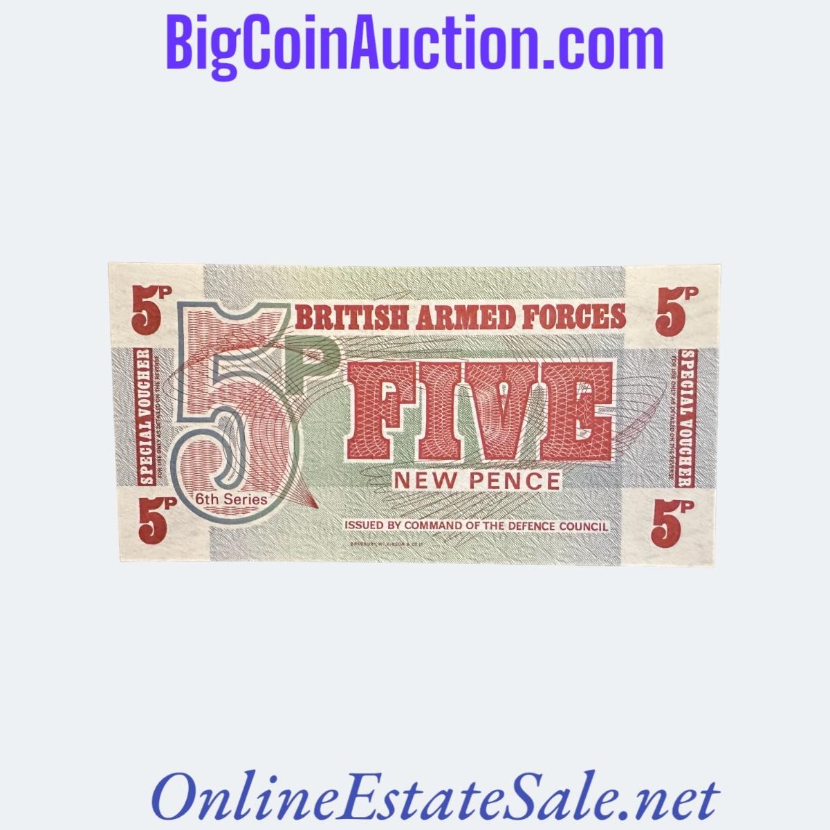 BRITISH ARMED FORCES SET OF 7 SPECIAL VOUCHERS - 5 PENCE, 10 PENCE, 50 PENCE, 3 - 1 POUND VOUCHERS, AND 5 POUNDS