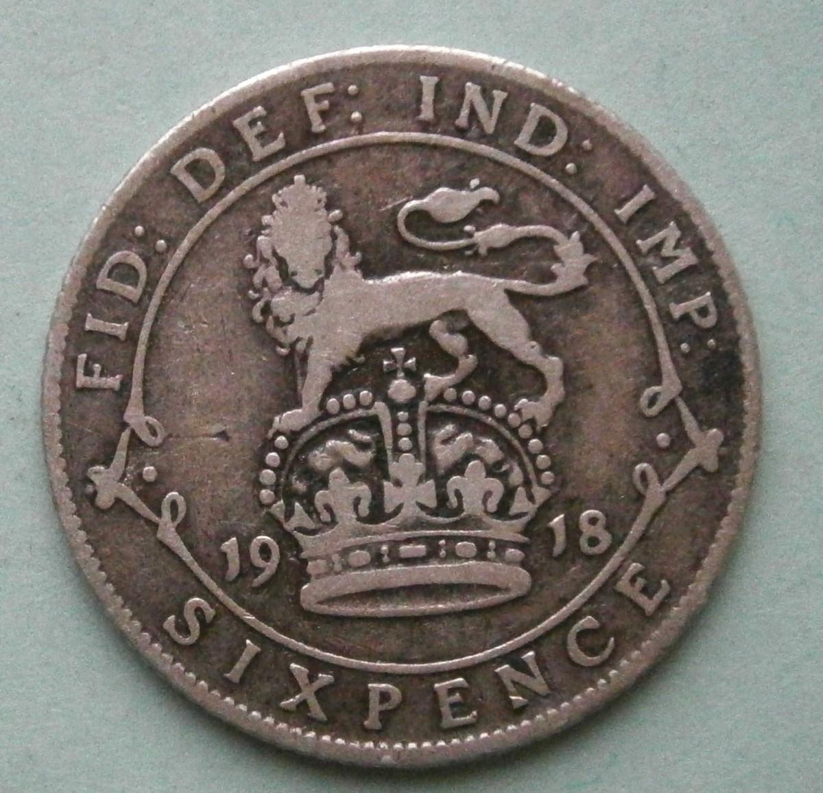 BRITISH EMPIRE - INDIA 1918 Six Pence Silver Coin