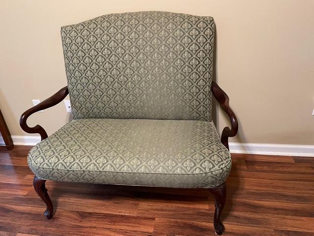 Brocade Settee/Loveseat with Queen Anne Legs 48"W x 26"D x 43"H