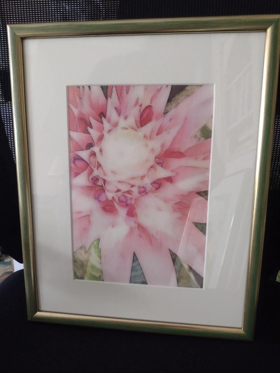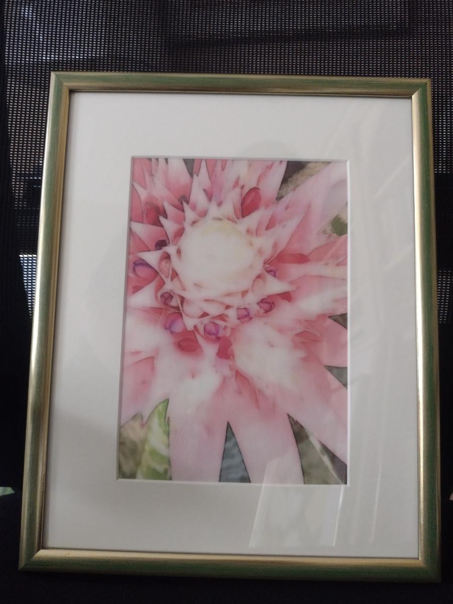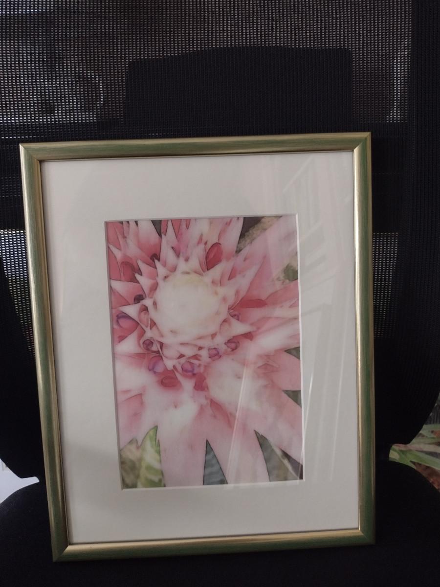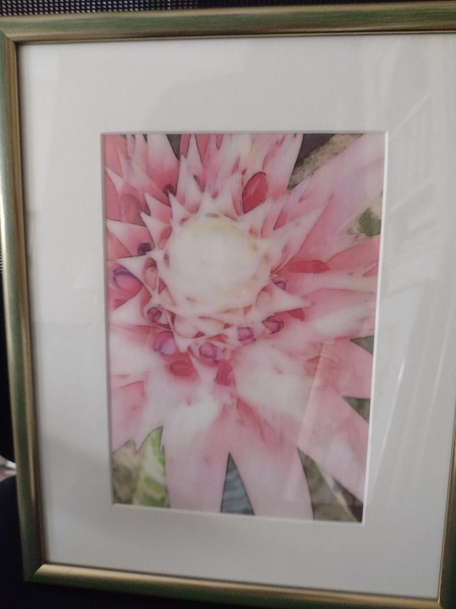 'Bromeliad in Bloom' by Jeannie Thomma Framed Painting on Silk Habotai Fabric (#34)
