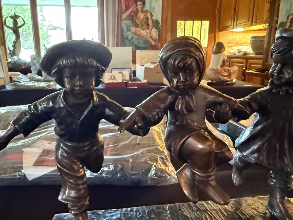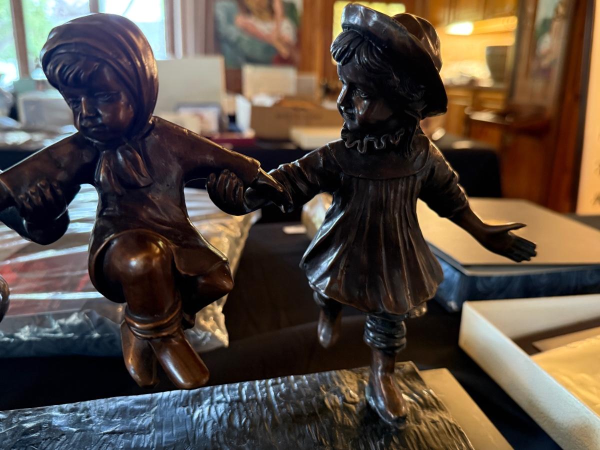 Bronze Sculpture of Children Playing - Signed Peyre