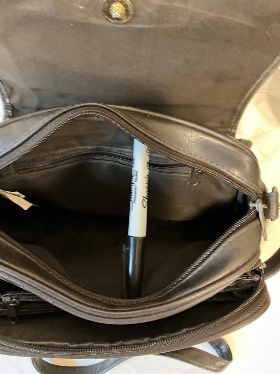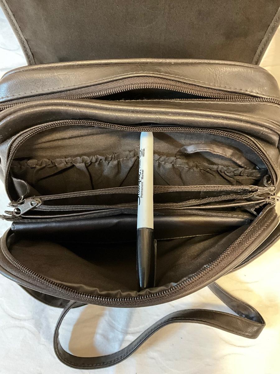 Brown, no name vinyl crossbody bag