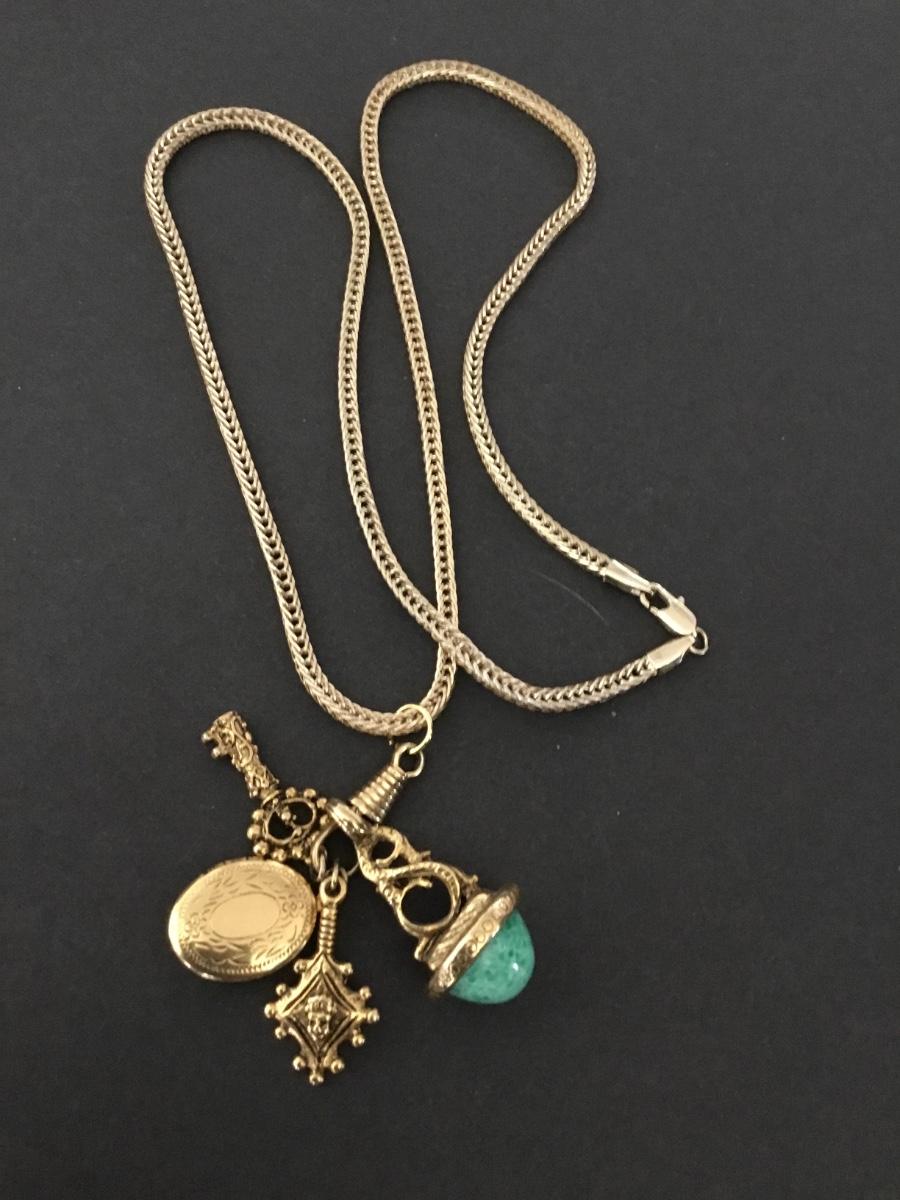 Bronze and gold, toned chain necklace and charms & locket pendant necklace