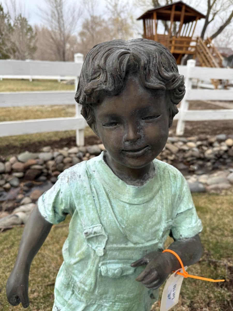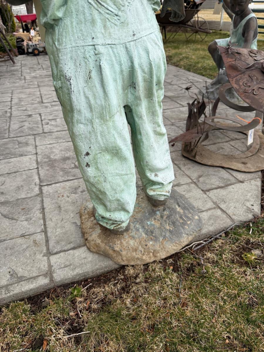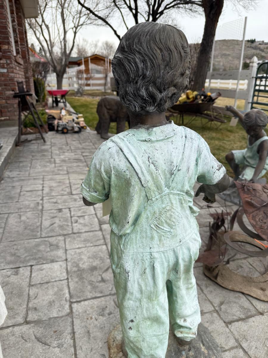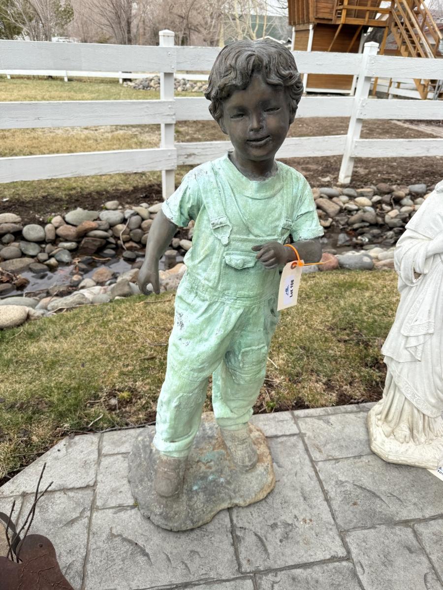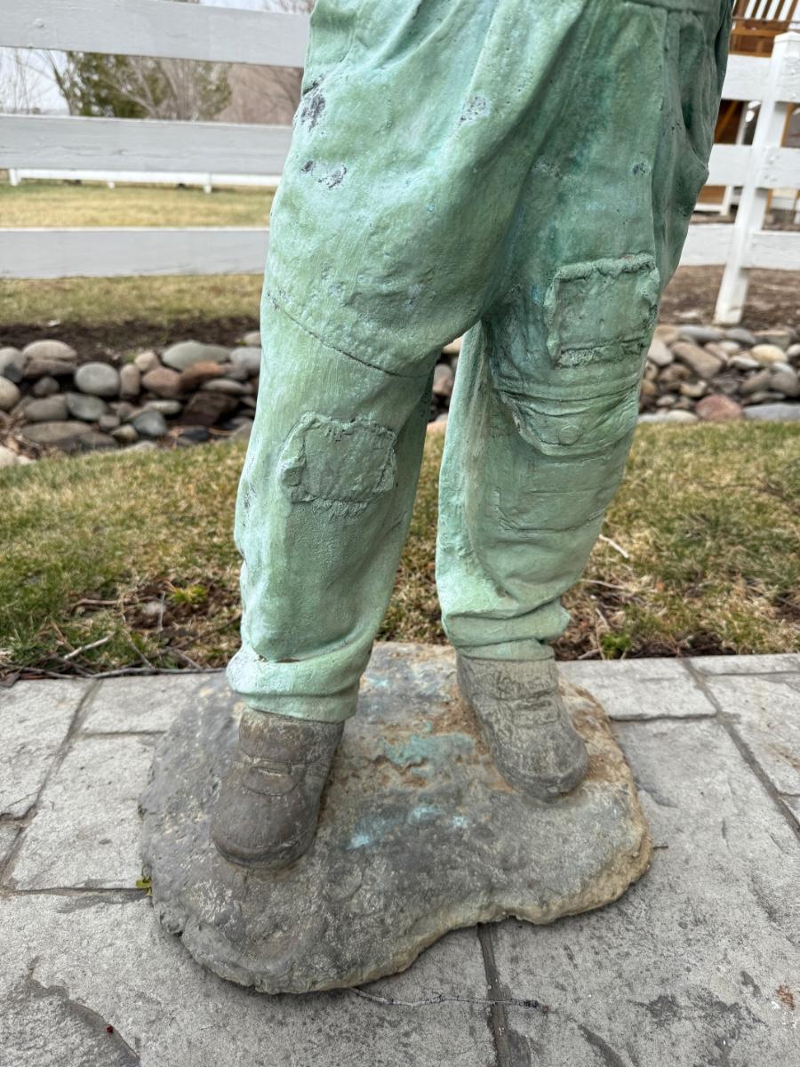 Bronze boy in Overalls 40”t life-sized outdoor statue