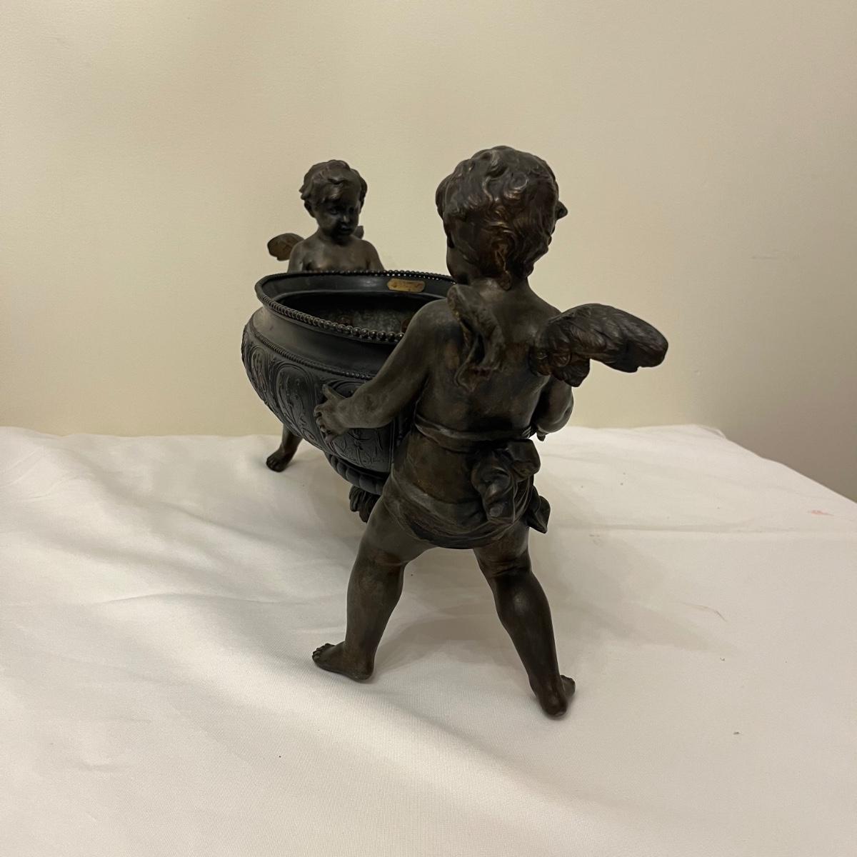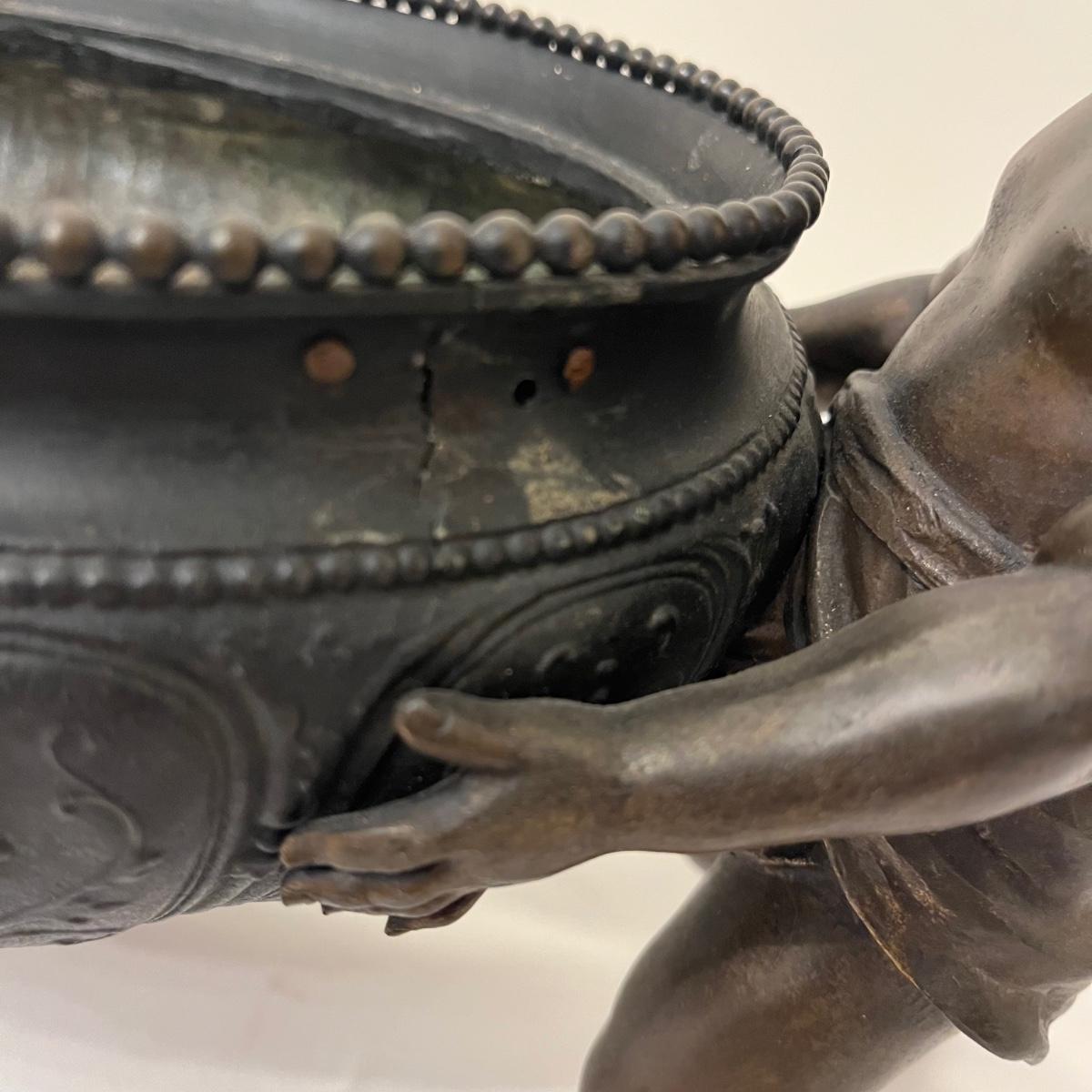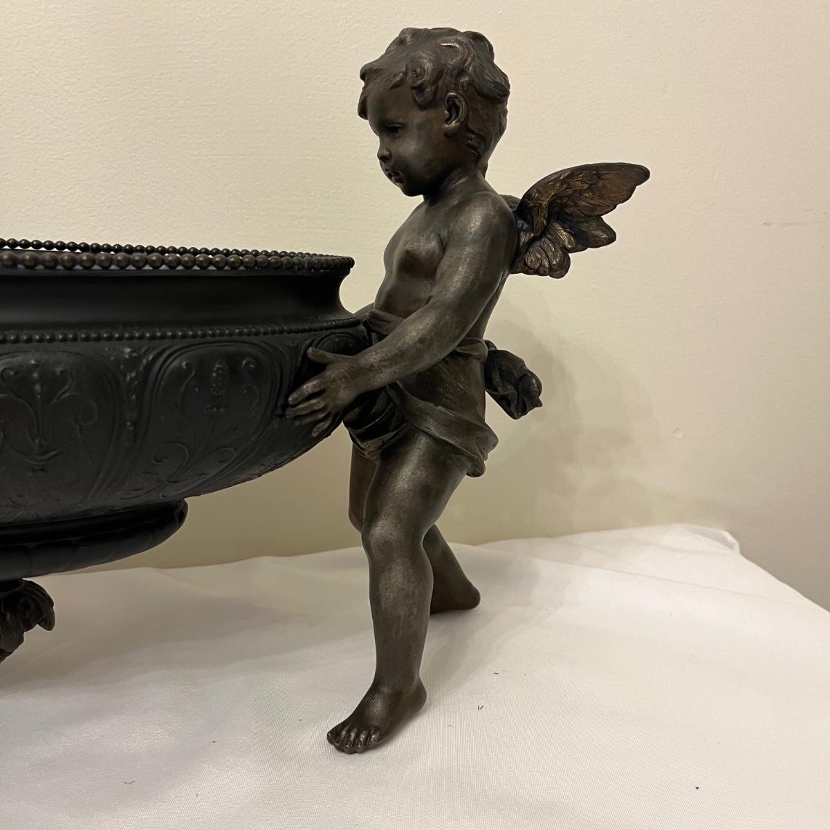 Lot includes a bronze cherub planter. Planter measures 7.5” x 22” x 11.25”. Piece has been repaired in two places, see pictures.
