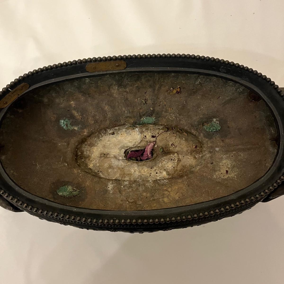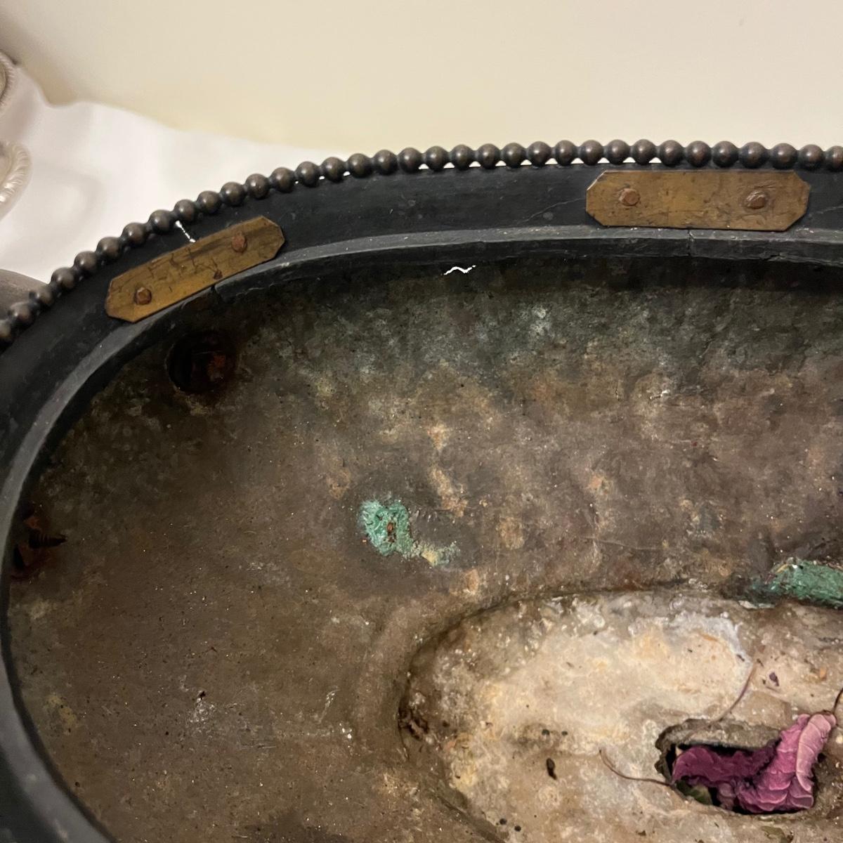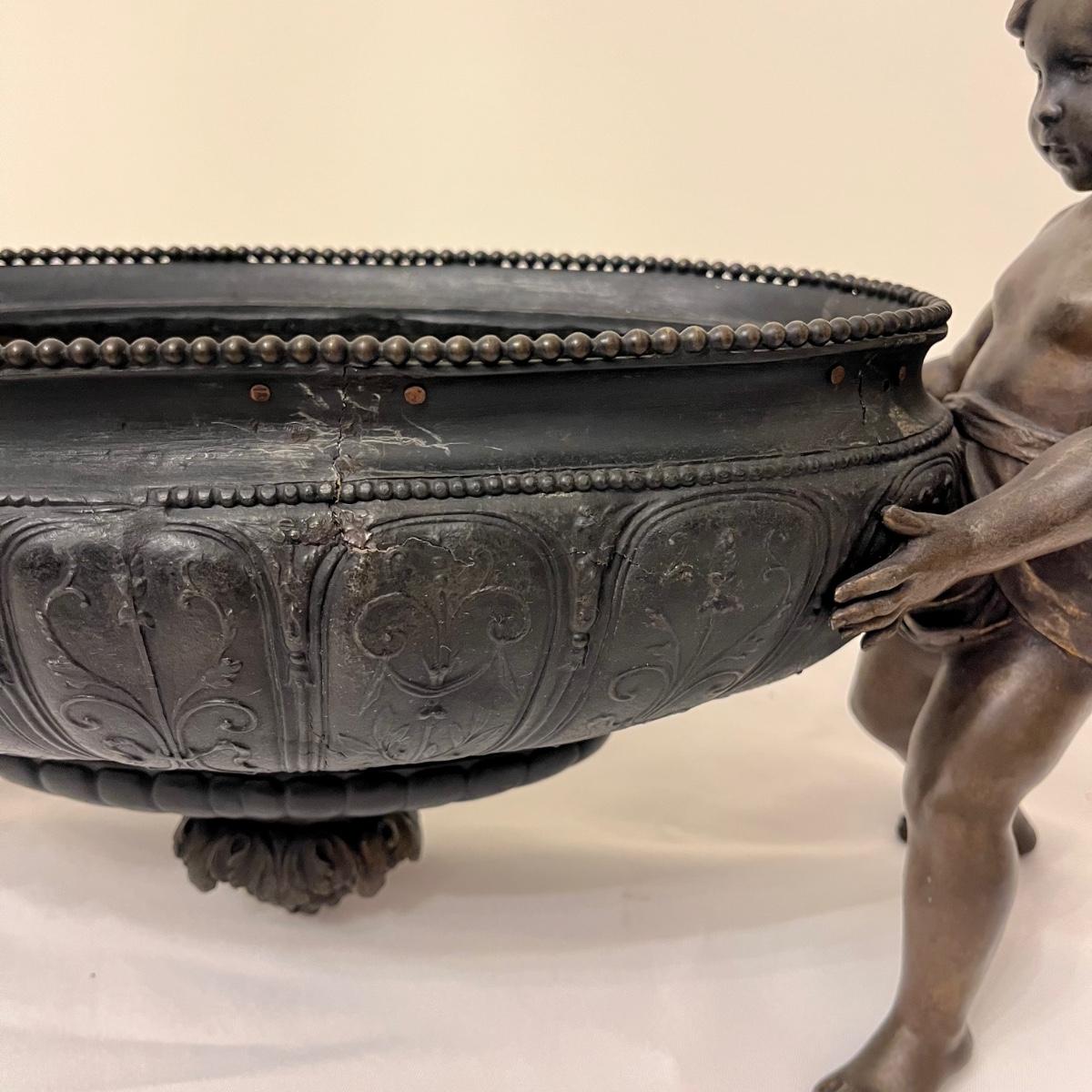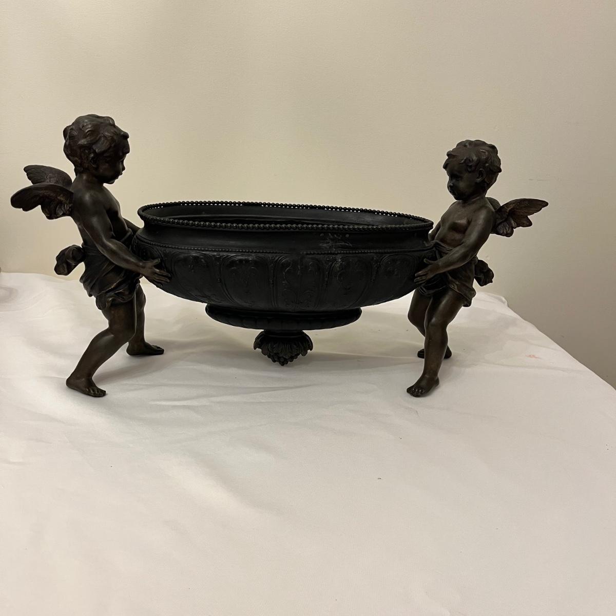 Lot includes a bronze cherub planter. Planter measures 7.5” x 22” x 11.25”. Piece has been repaired in two places, see pictures.
