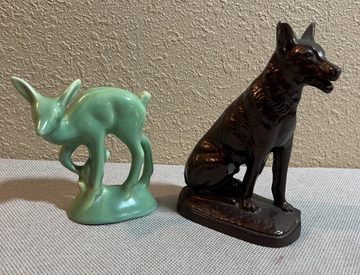 Bronze dog and Ceramic Deer: Rin-Tin-Tin and Bambi