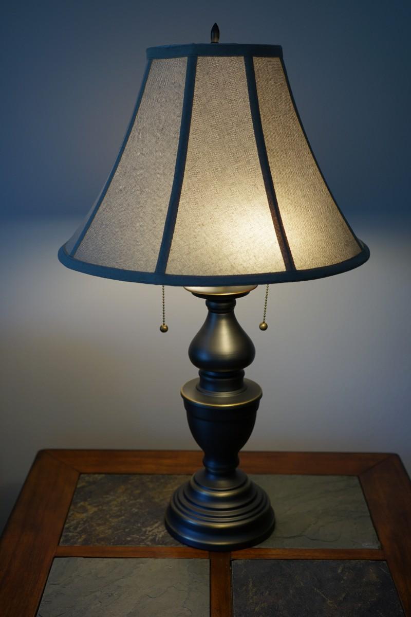 BRONZE FINISH TABLE LAMP W/ NICE SHADE