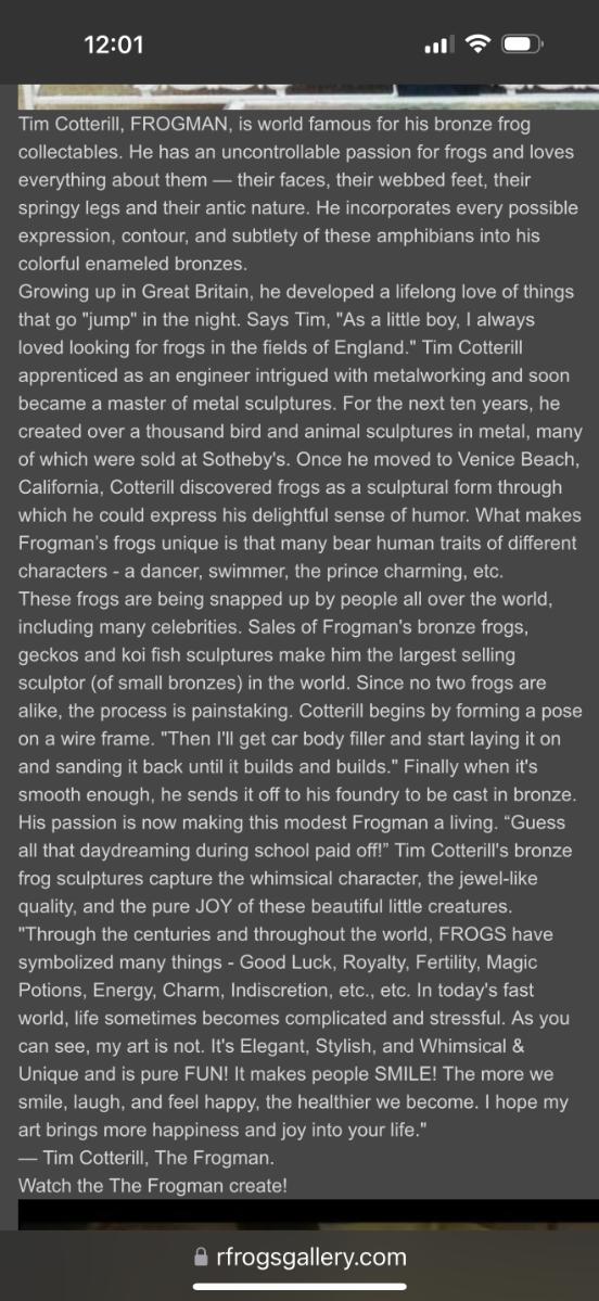 Limited Edition Bronze Frog by Tim Cotterill “Leaping for Joy” signed and numbered 11/500