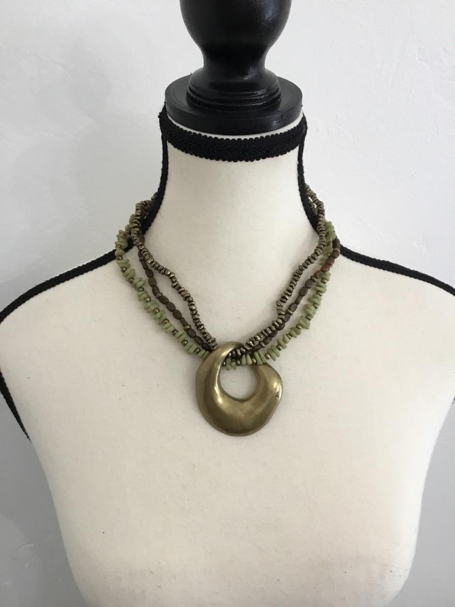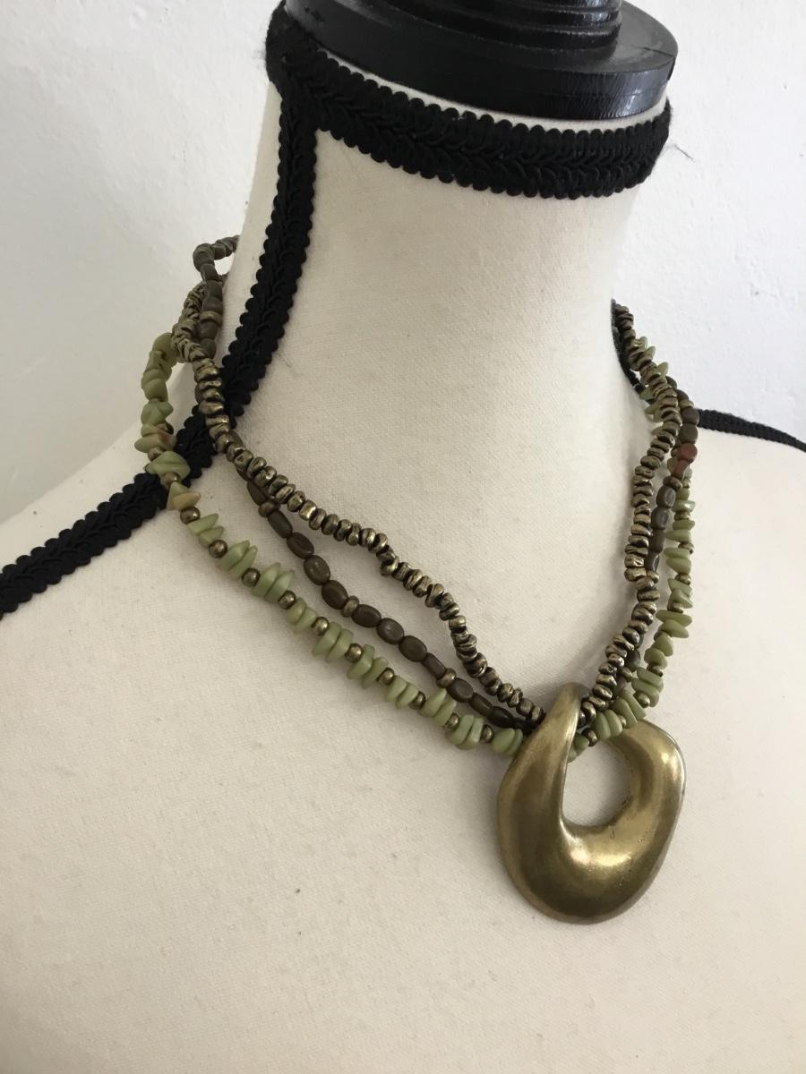 Bronze gold, light green, multi layered statement, necklace