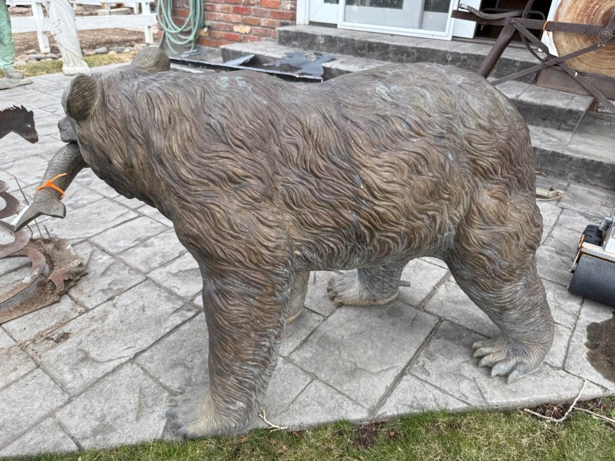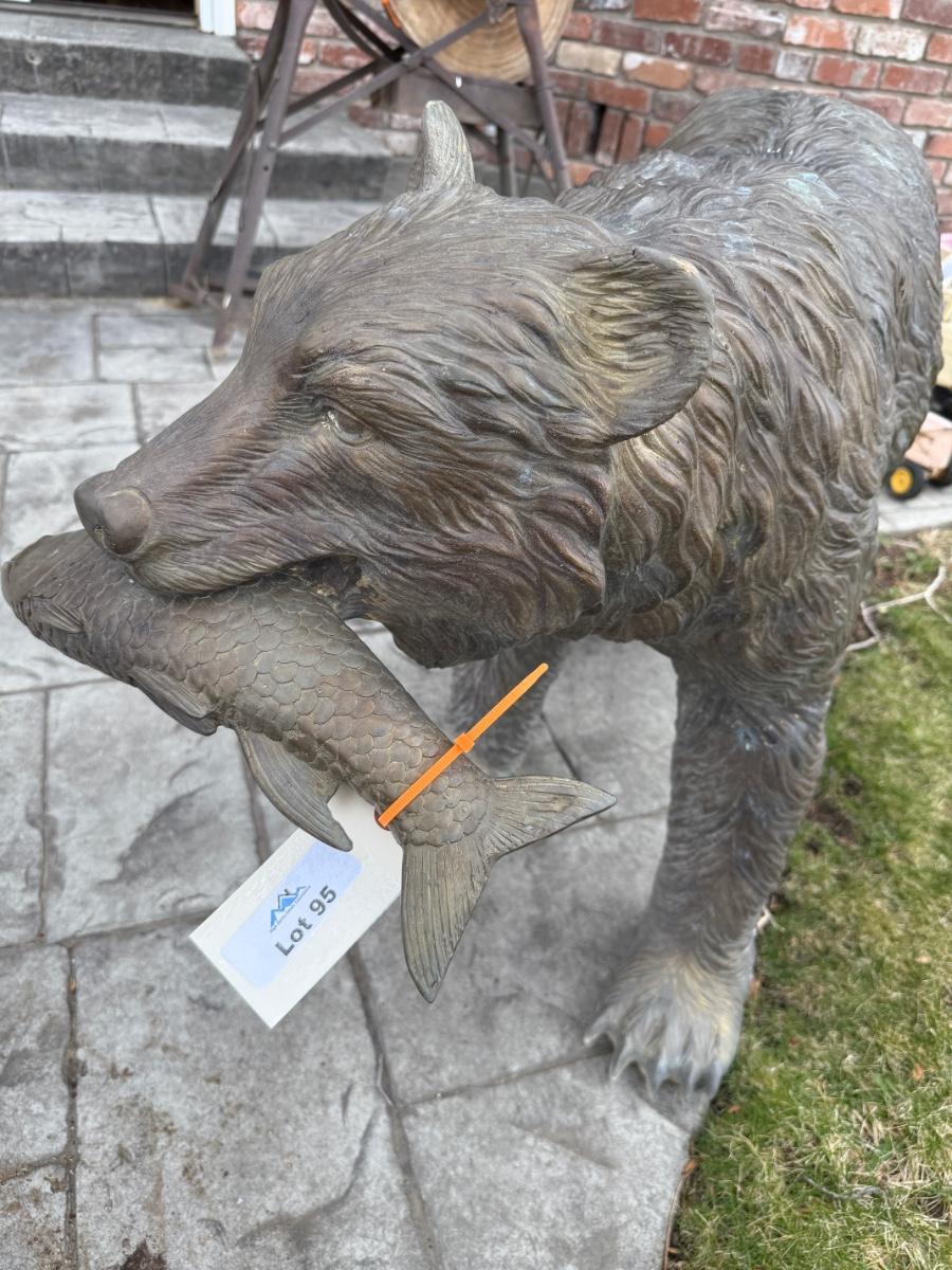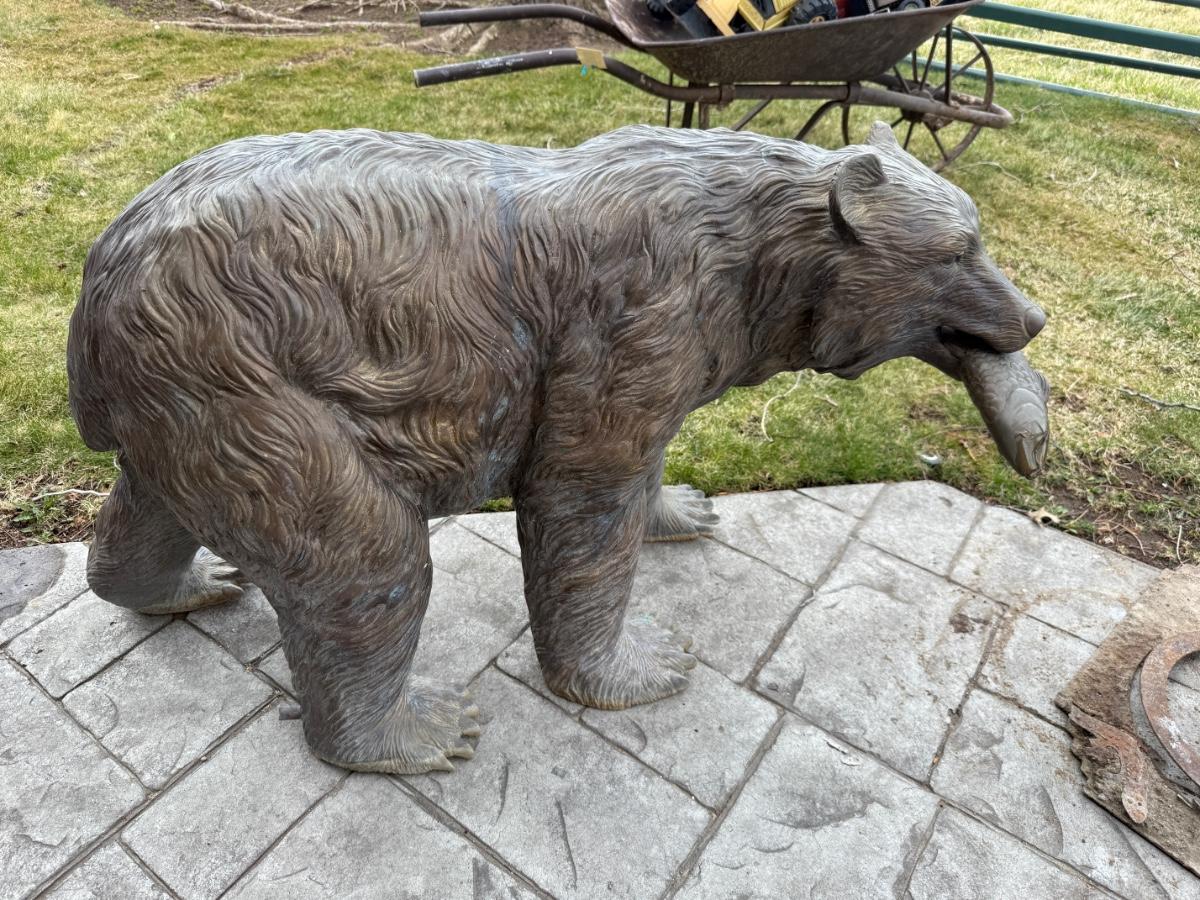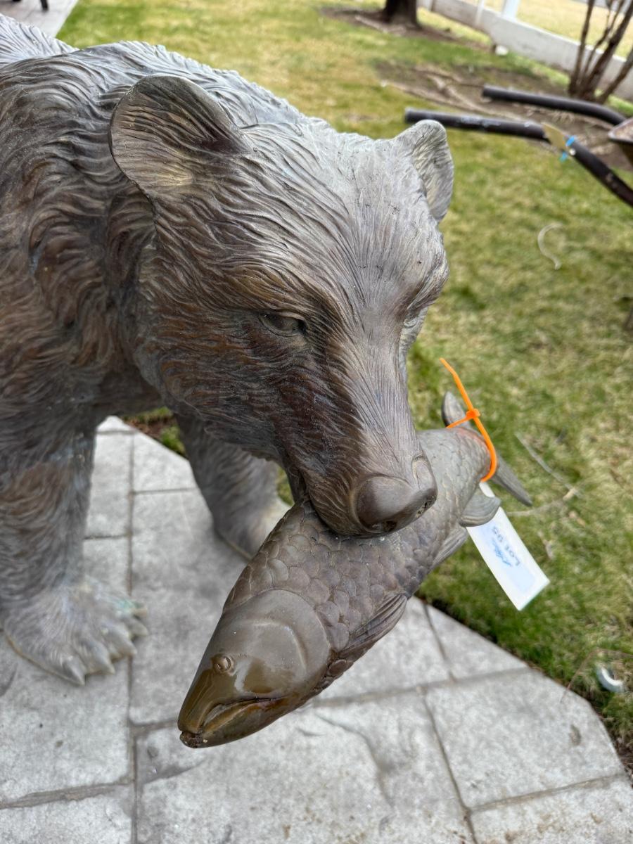 Bronze Grizzly Bear w/Salmon in Mouth outdoor statue