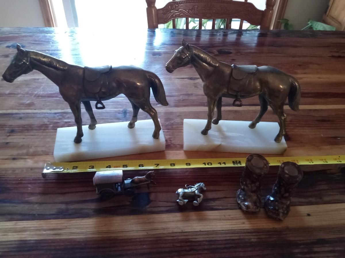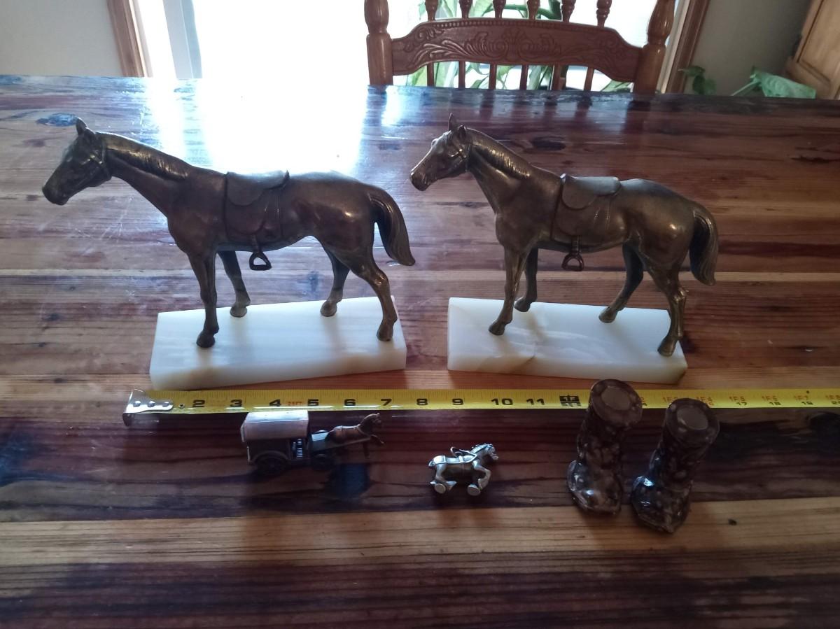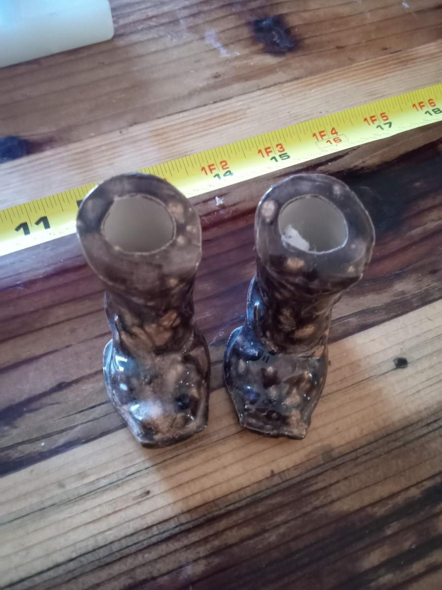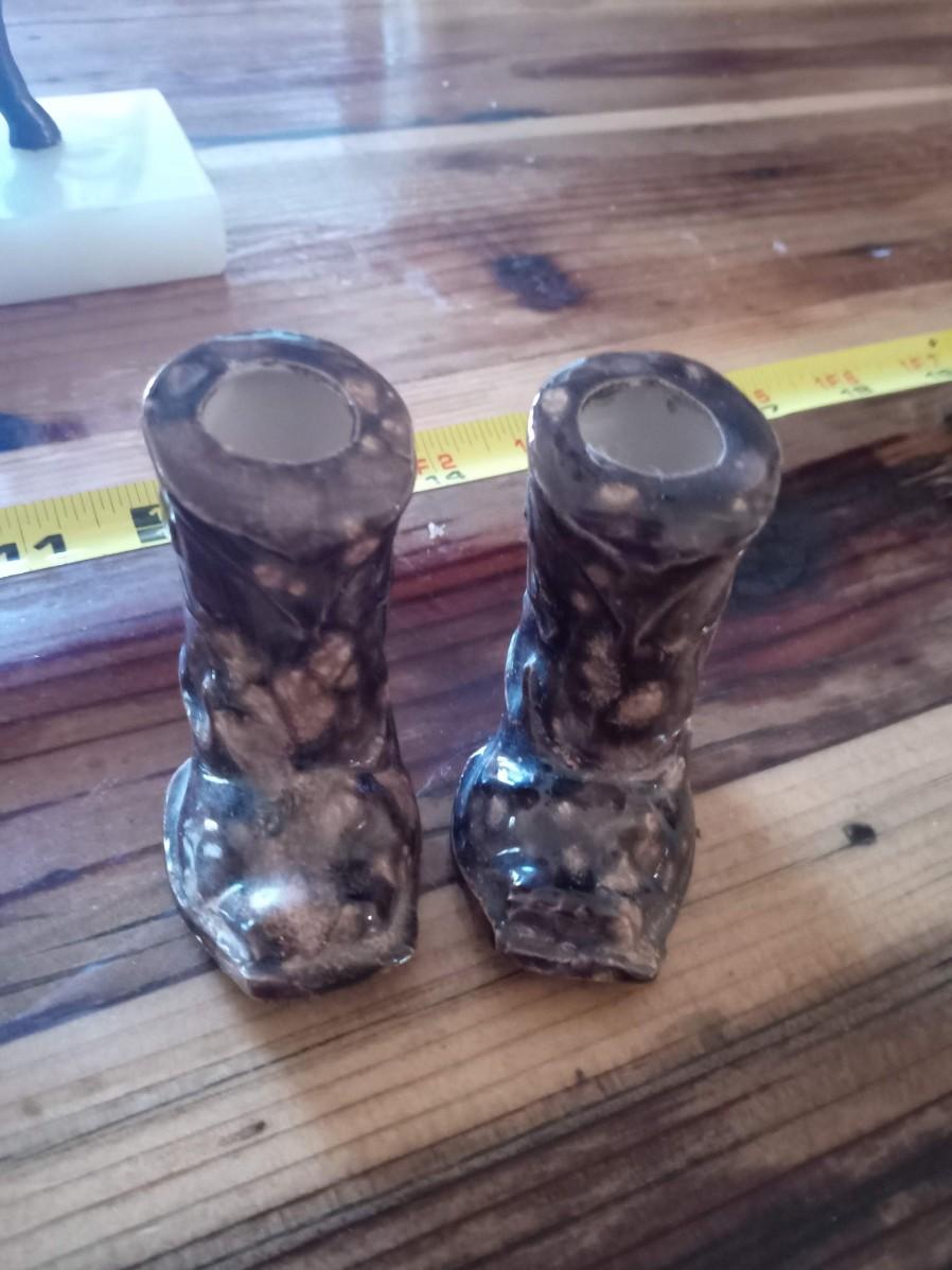 CERAMIC COWBOY BOOT TOOTHPICK HOLDERS AND A PEWTER ORNAMENT