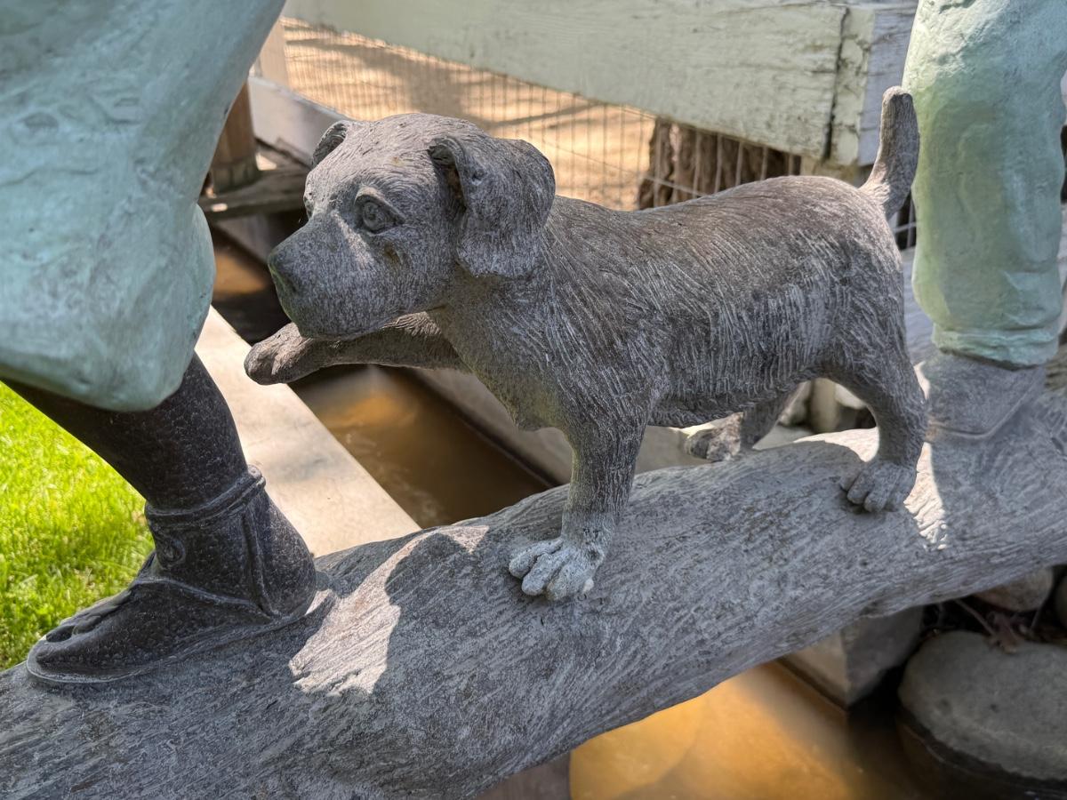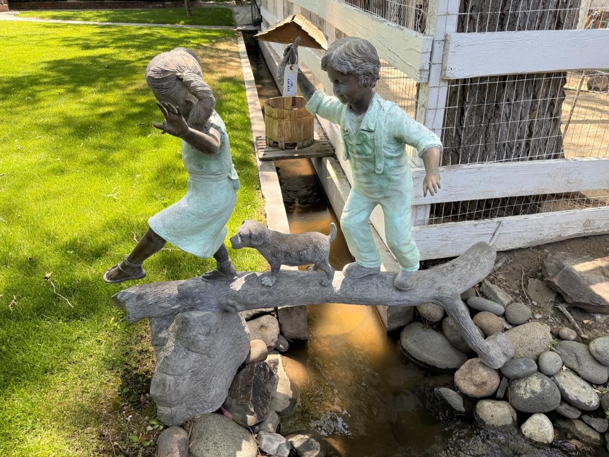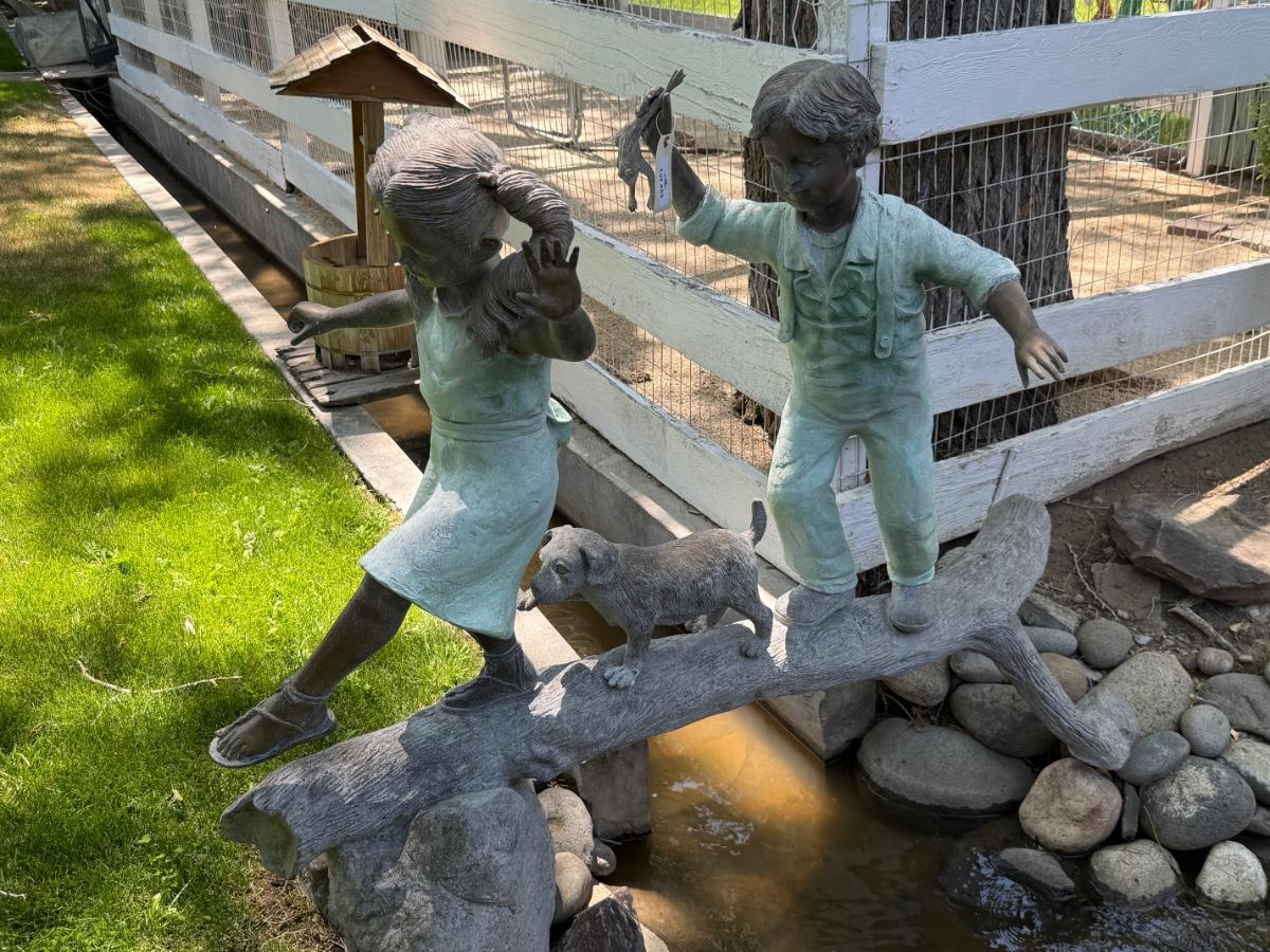 Bronze Log w/2 Kids & Dog outdoor 5’ l x 5’t Deco