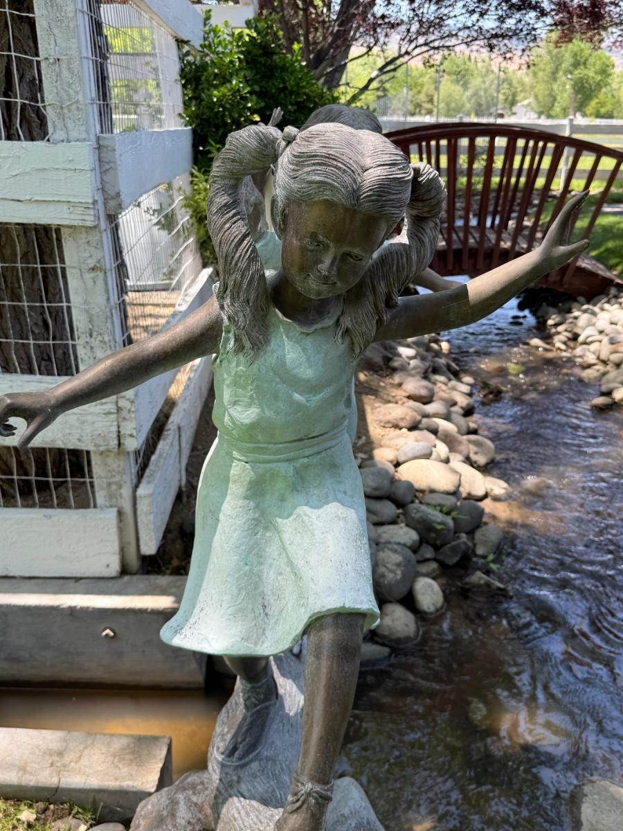 Cute outdoor Bronze w/2 kids & dog on it 5’l x 5t est.