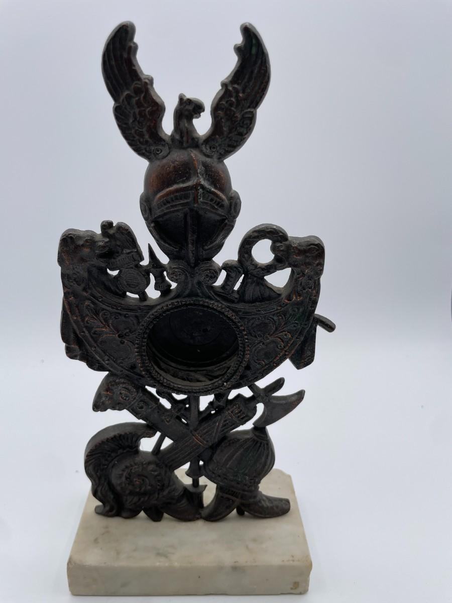 Bronze & Marble Pocket Watch Holder; 9.5" H x 4.5", 1.5" opening