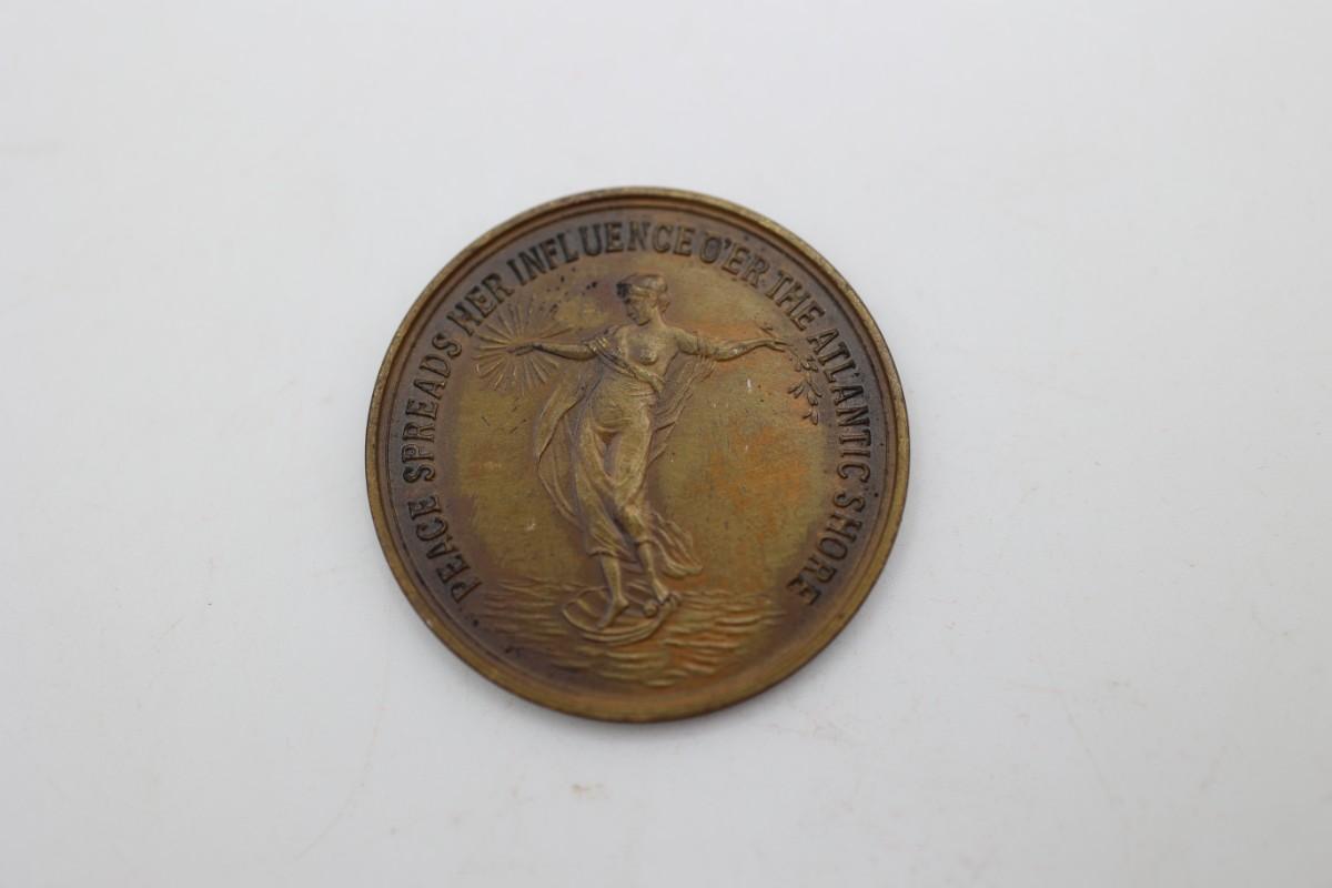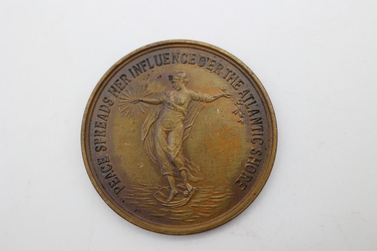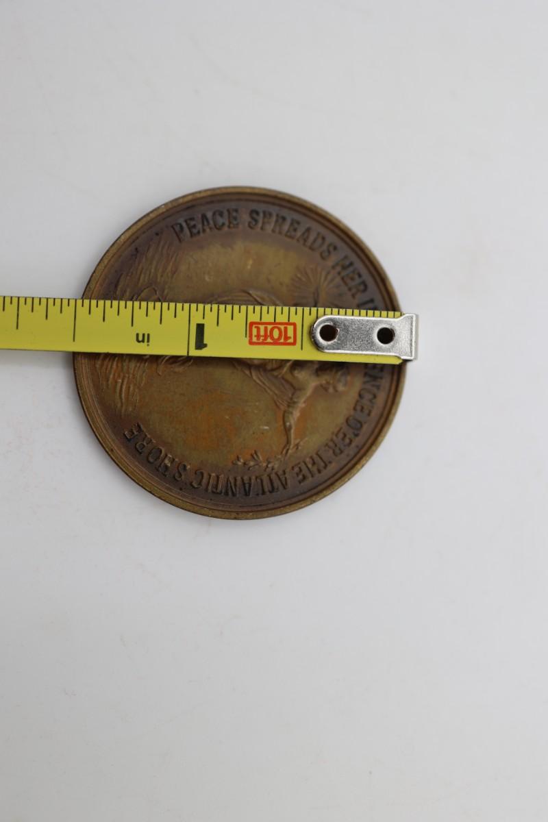Front: Peace spreads her influence o'er the Atlantic shore.