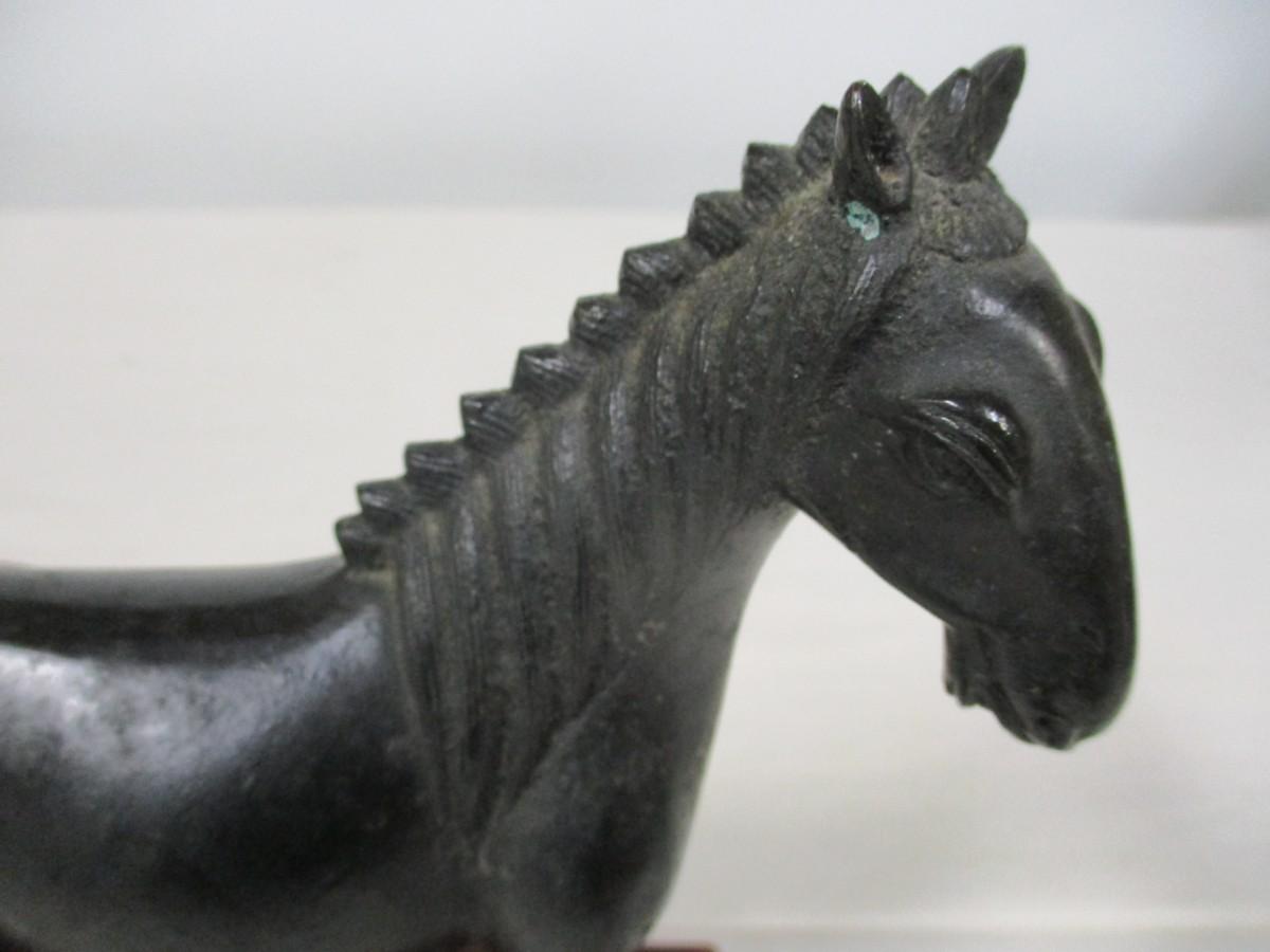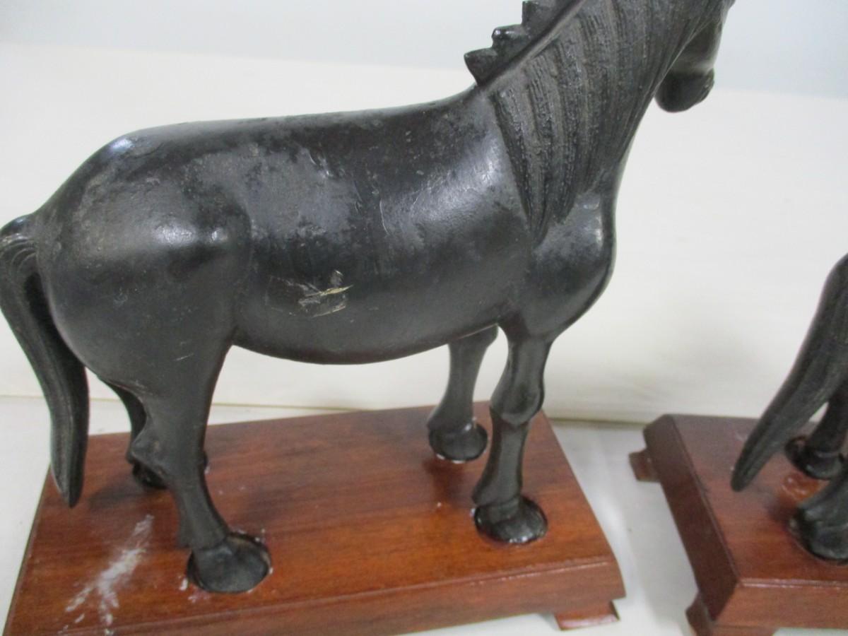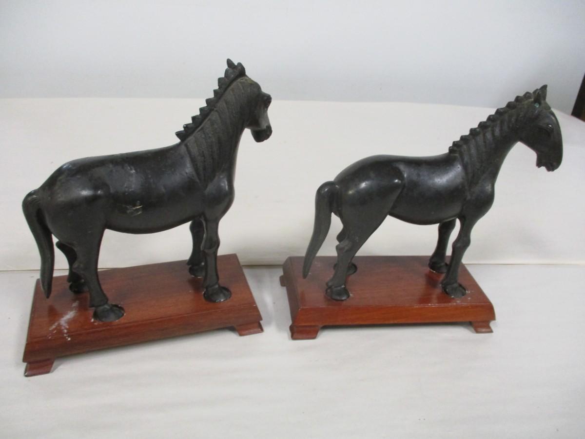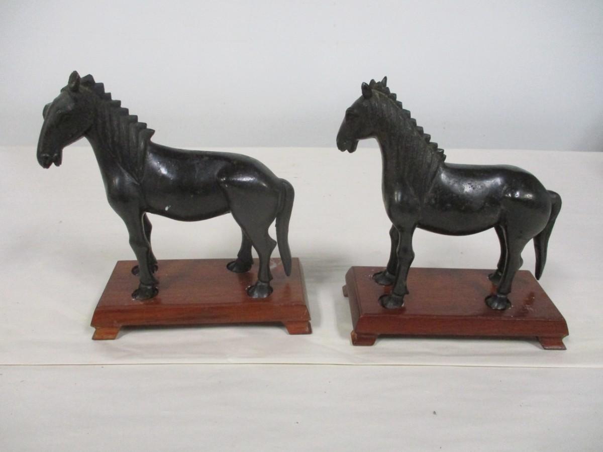 Pair of Vintage Bronze Horse Models on Fitted Wood Stands