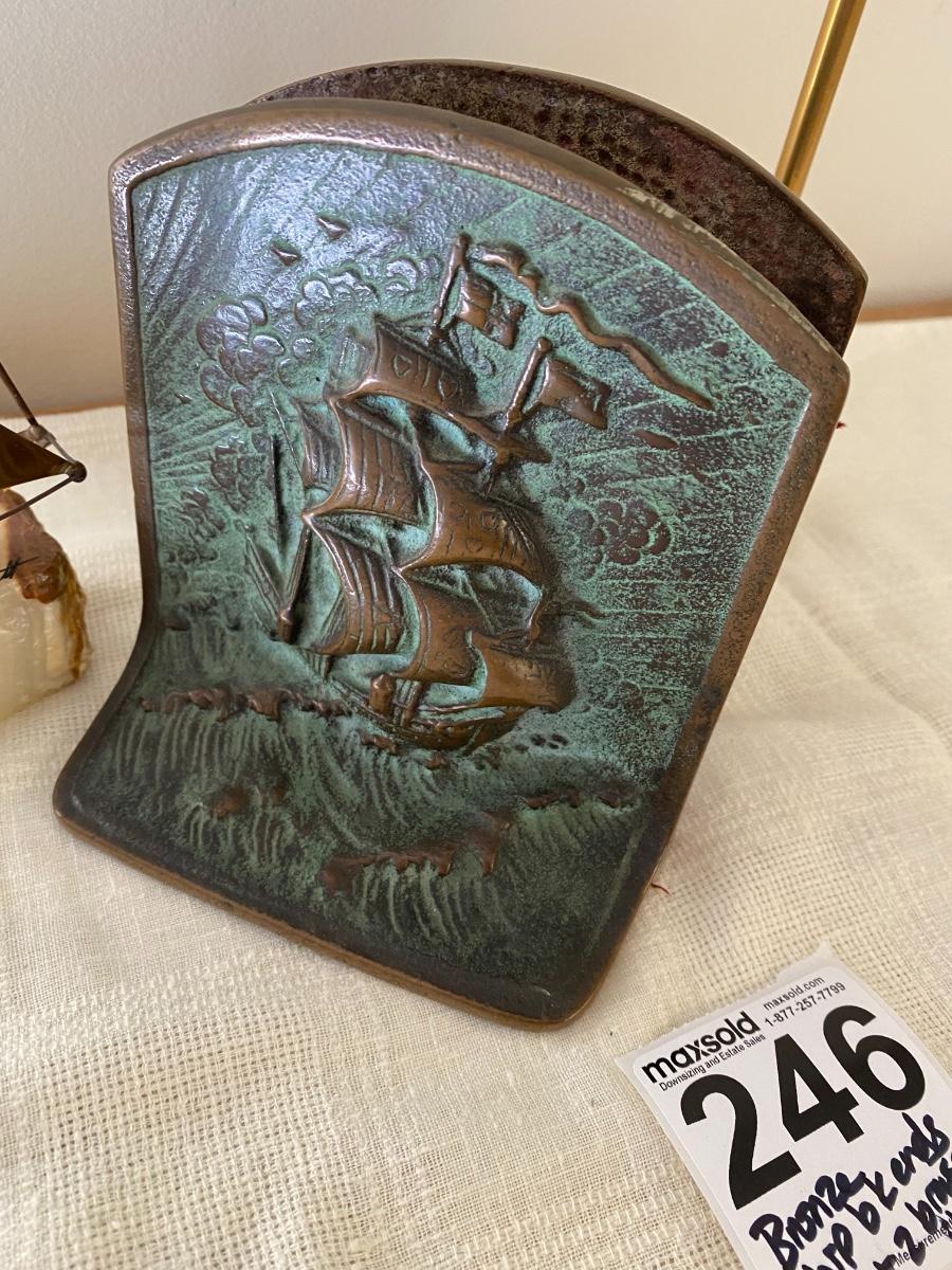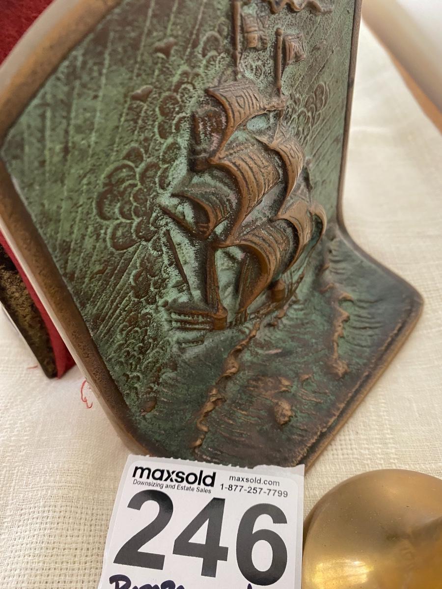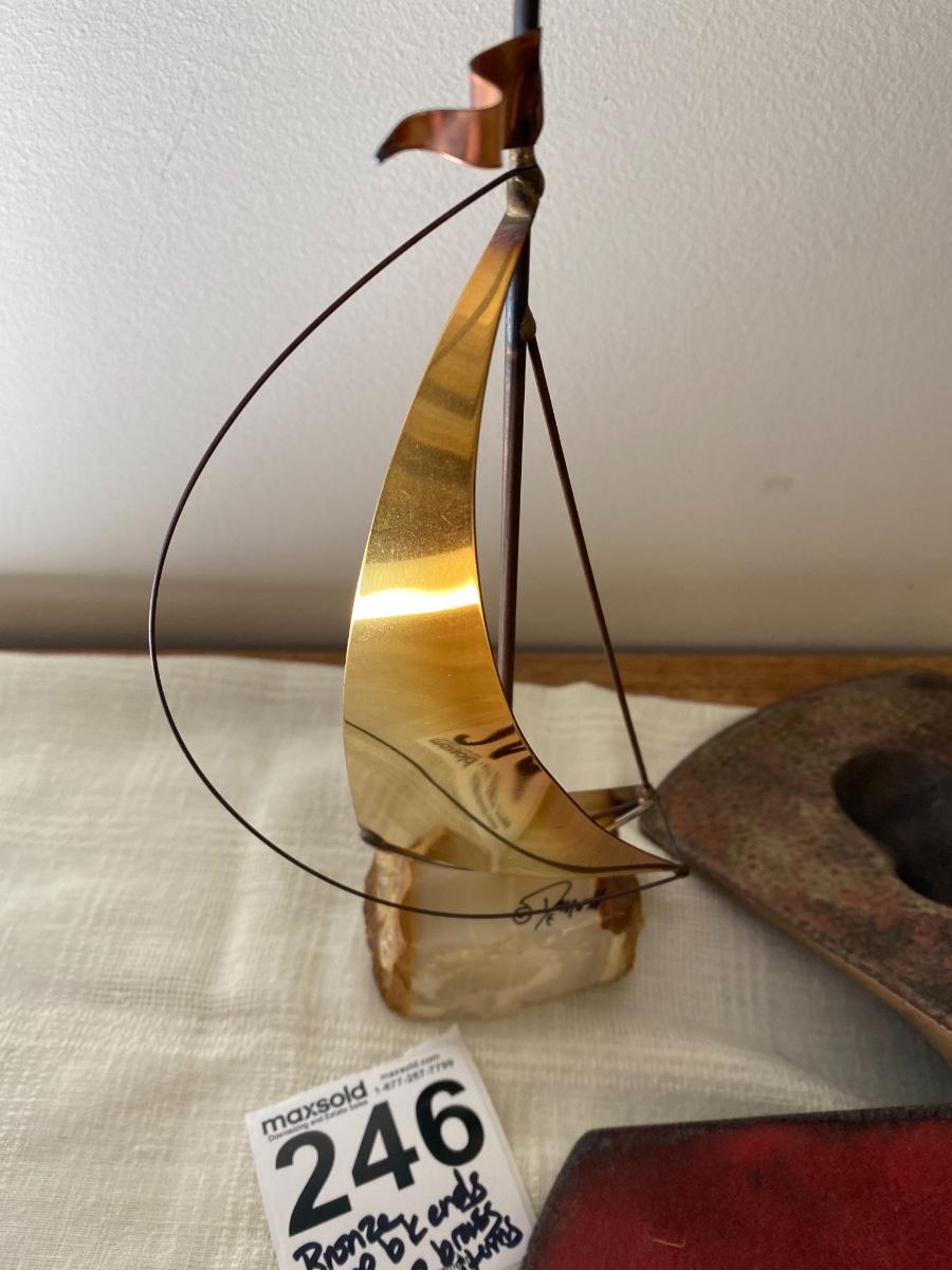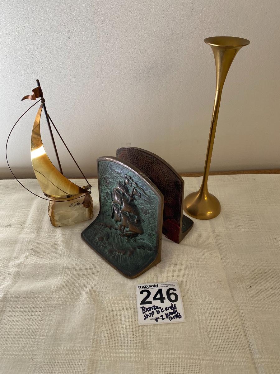 Three Items. Includes and Antique bookends, brass candlesticks and brass sailboat figuring that is signed. See all photos. Inbox and guestroom.