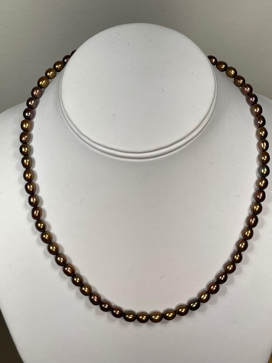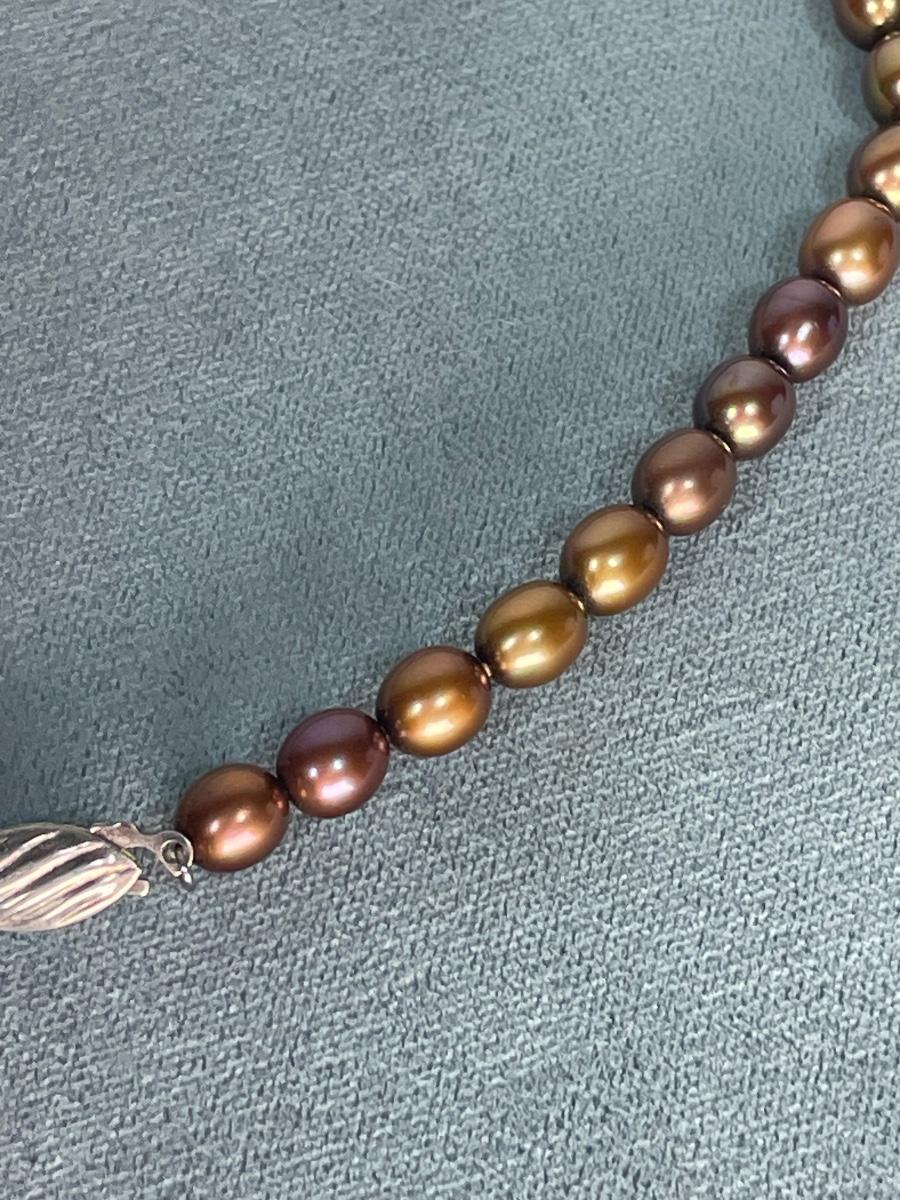 With Sterling silver clasp. Very pretty variation of colors. Genuine pearls