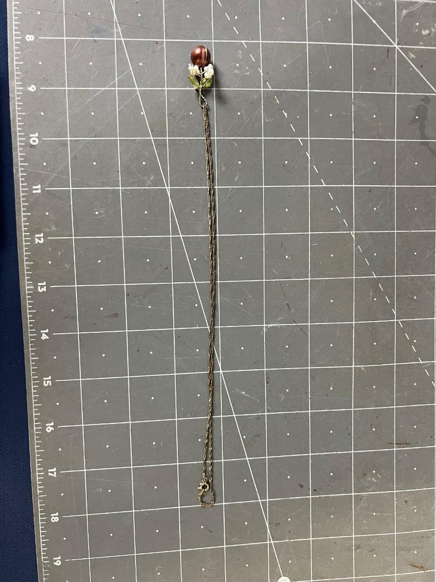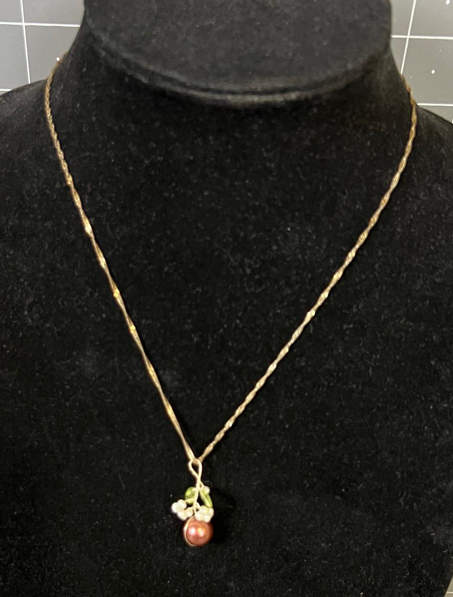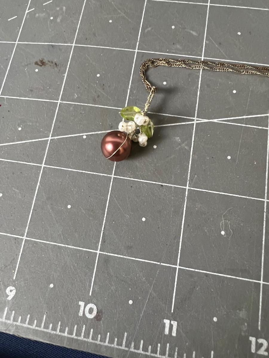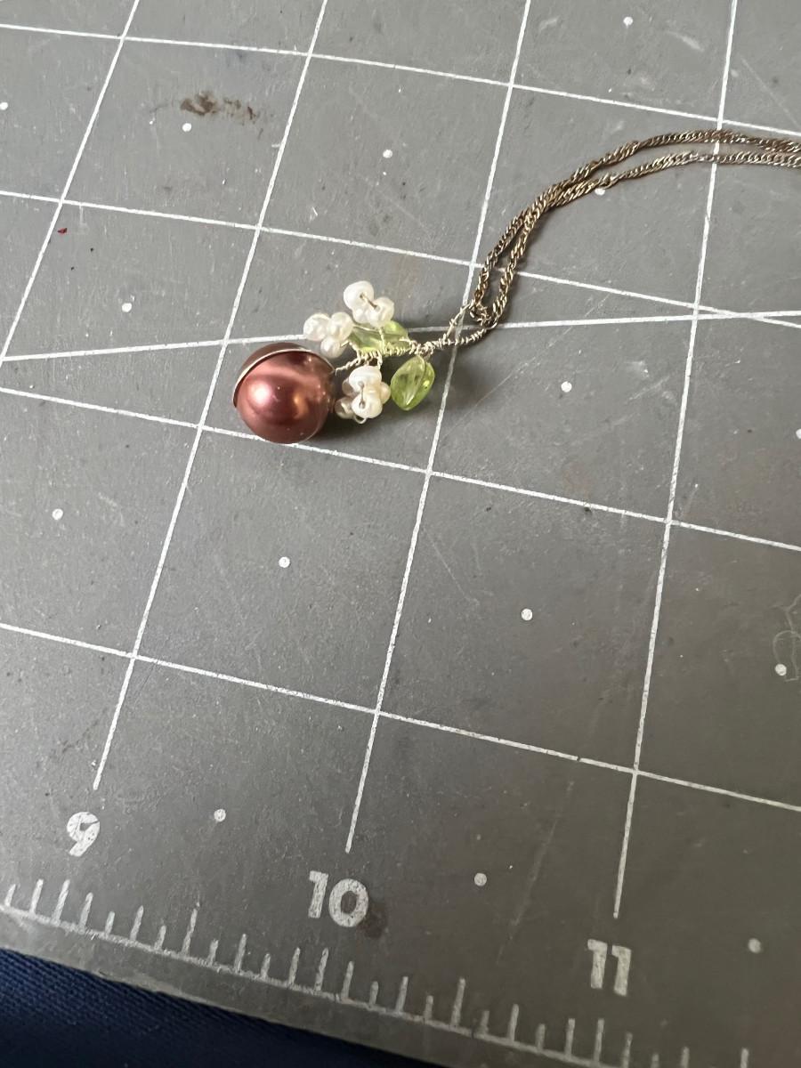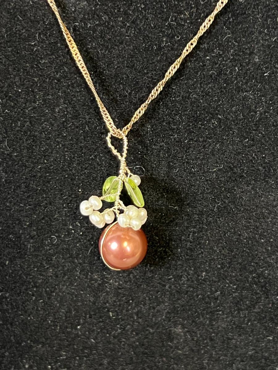 Bronze Pearl, with Green Glass and Mini Pearls Pendant and Chain Sterling
