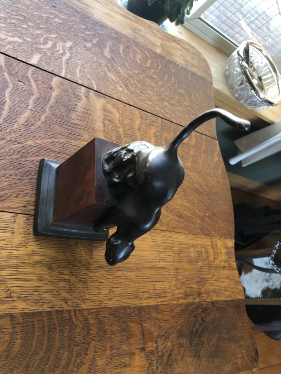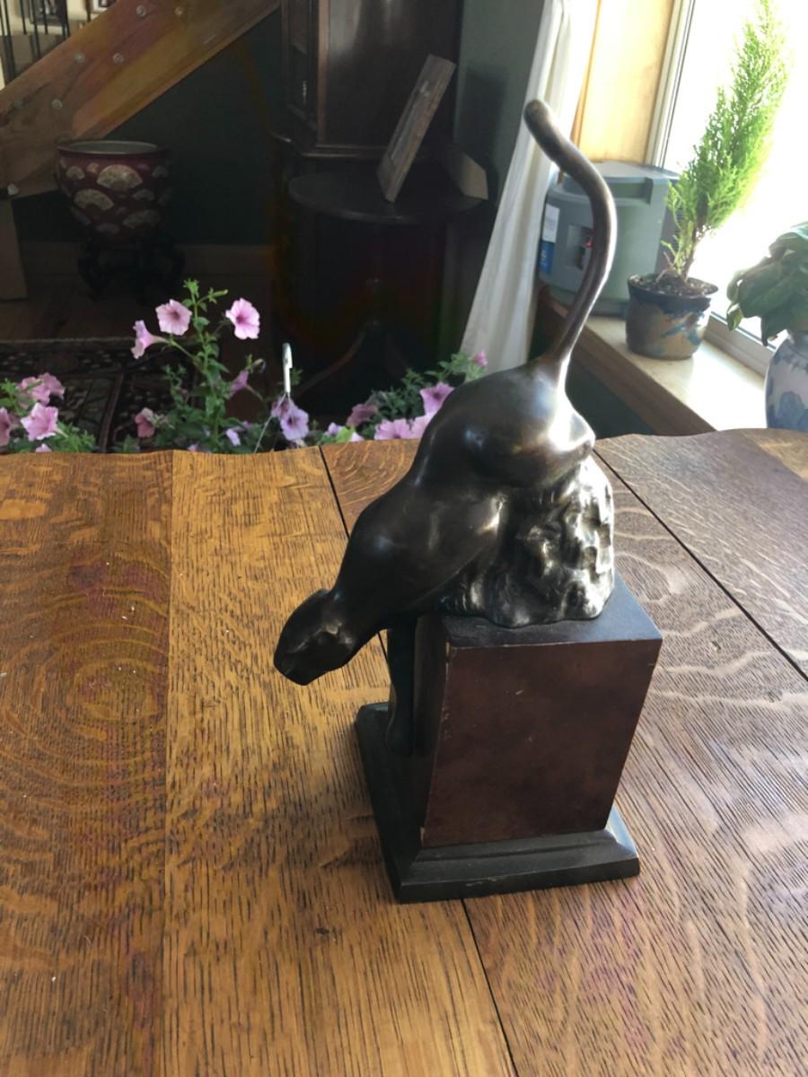 This Bronze Puma is in good condition with small blemishes on the base. 10.5 in tall and 5.5 in wide