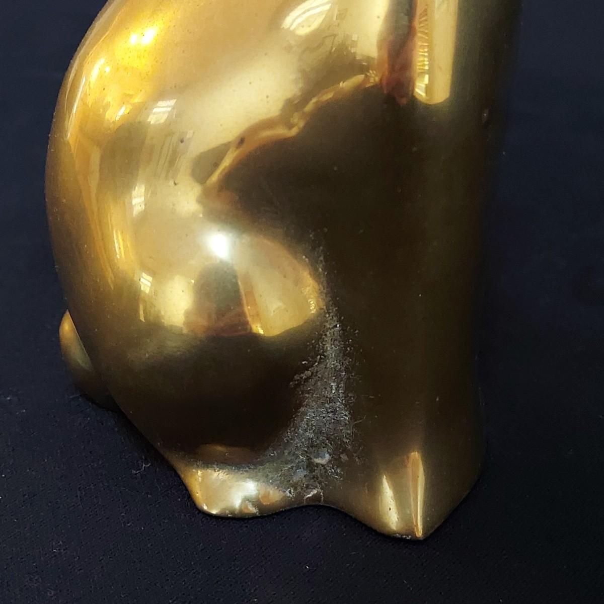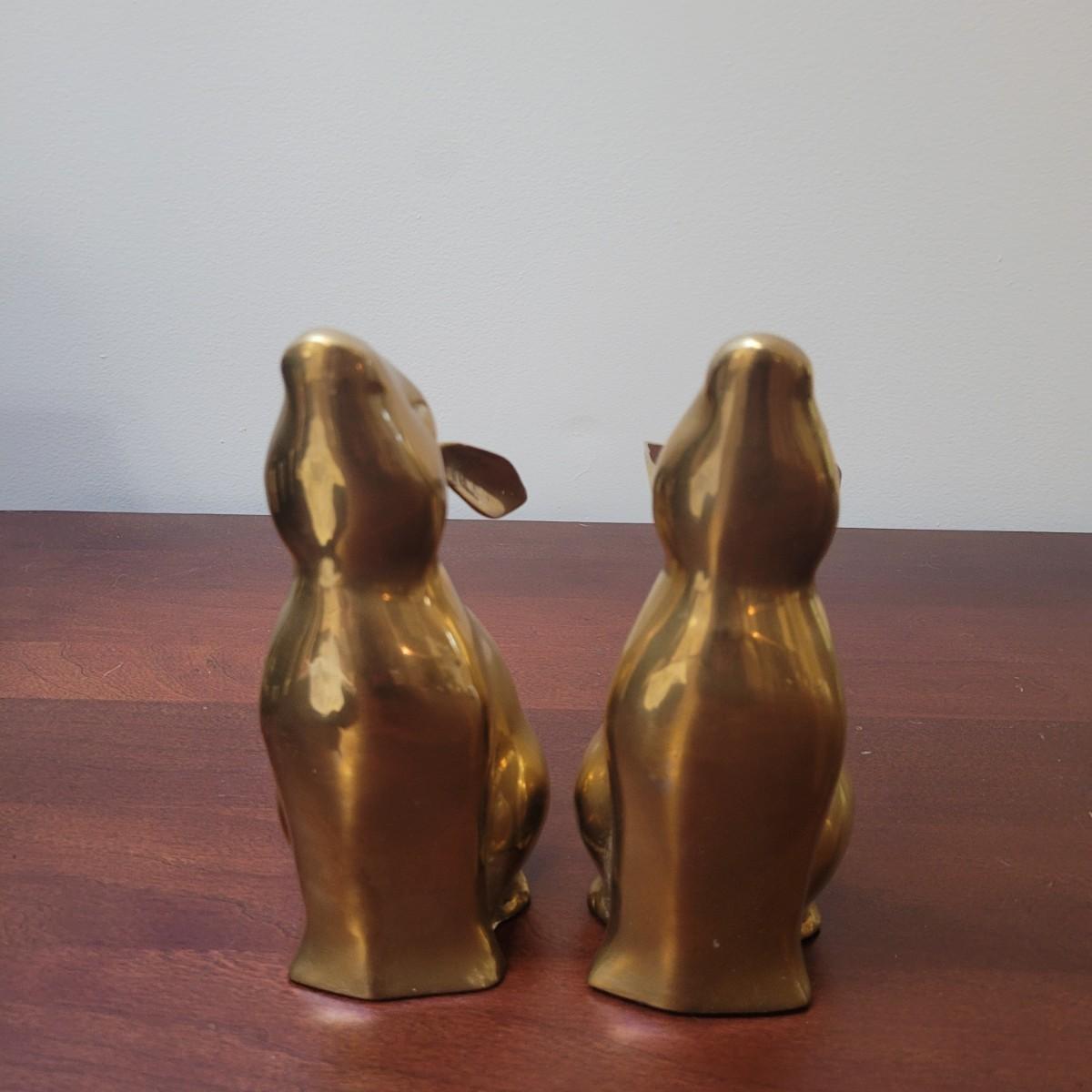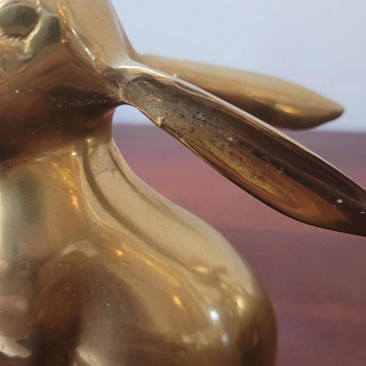 This pair of brass rabbit bookends has some residue and scuff marks, possibly some oxidation. See photos for details. Each rabbit measures approximately 2.5” x 4” x 8”H. Sticker appears to read Jack Housman Inc. Made in Korea. Shipping available.