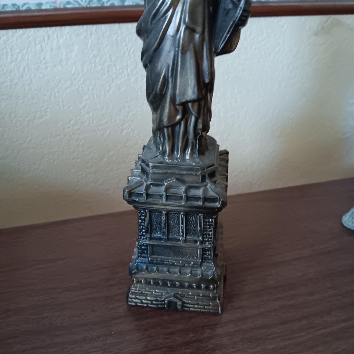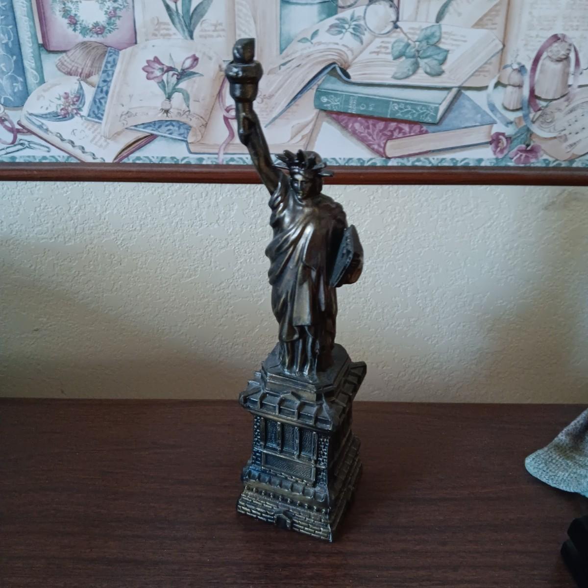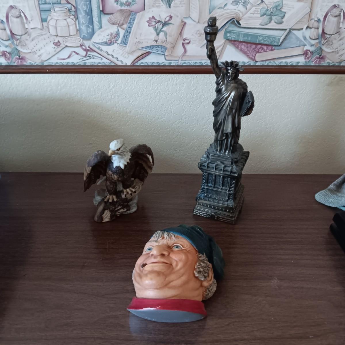 BRONZE STATUE OF LIBERTY, TOBY STYLE BUST AND A CERAMIC EAGLE