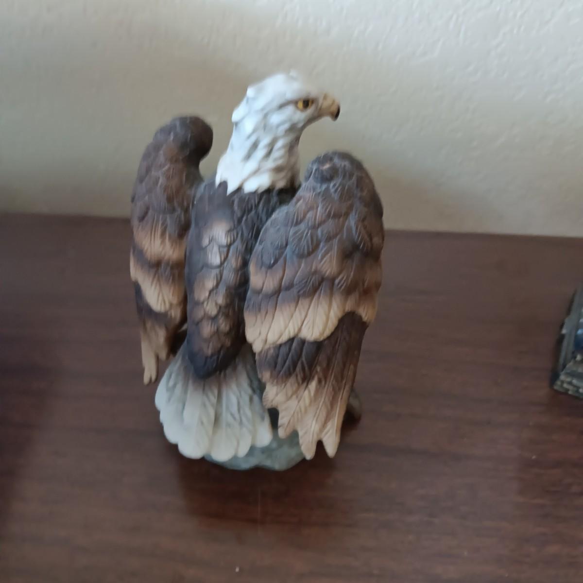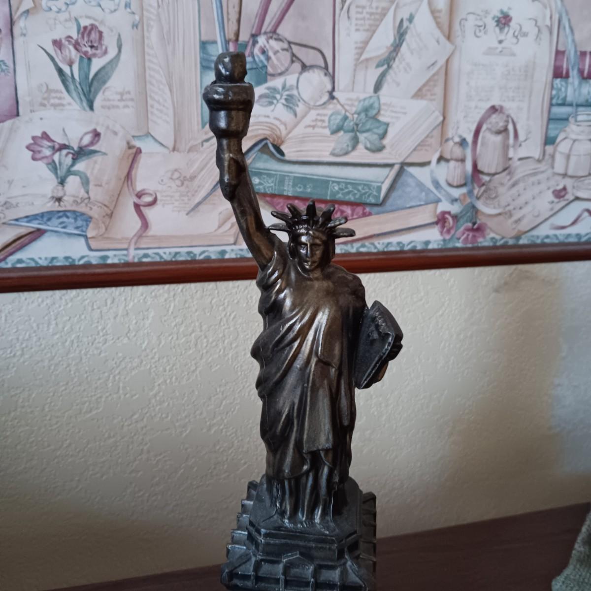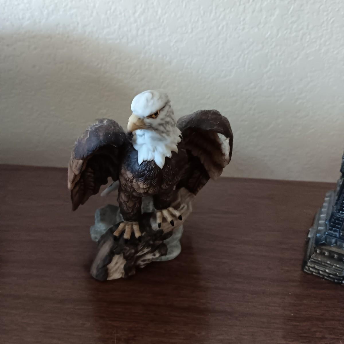 BRONZE STATUE OF LIBERTY, TOBY STYLE BUST AND A CERAMIC EAGLE