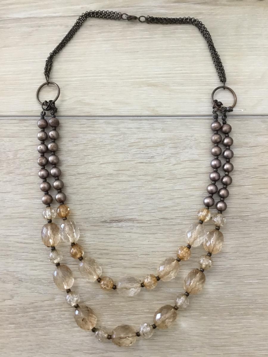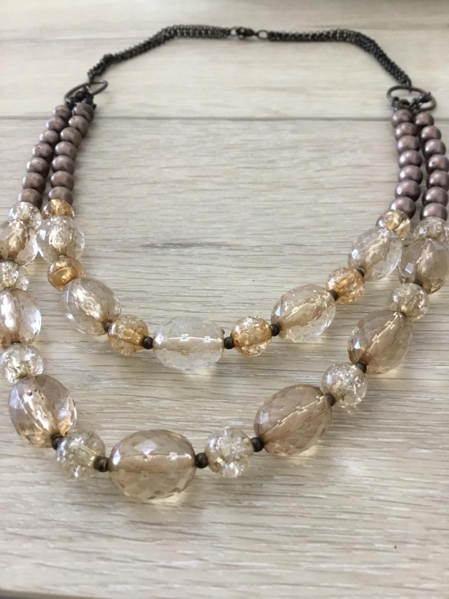 Bronze tone tan beaded fashion necklace
