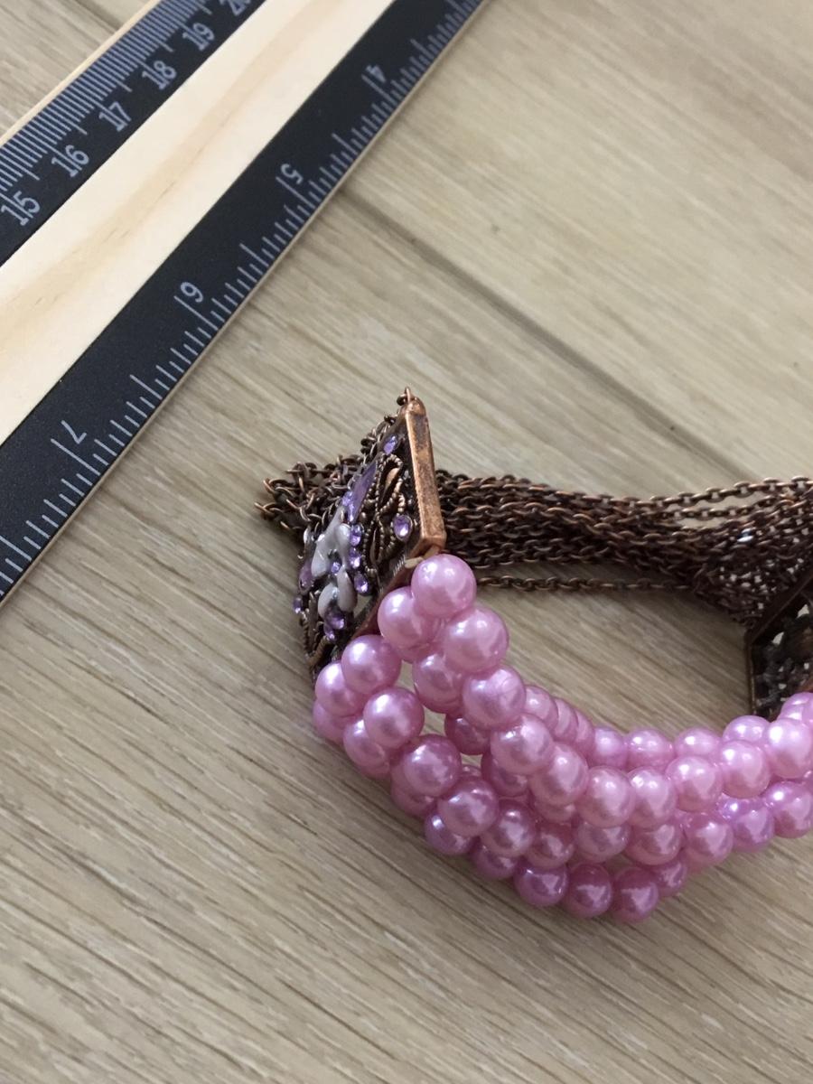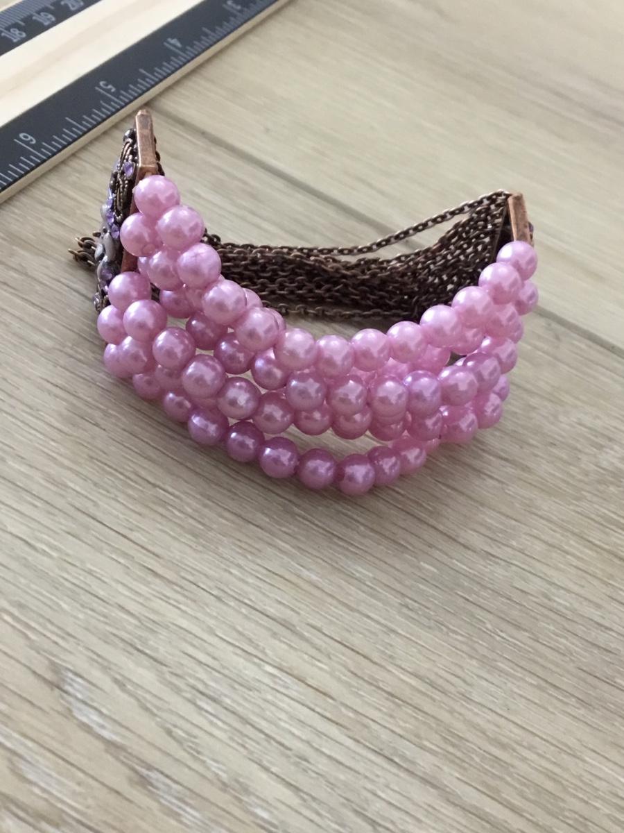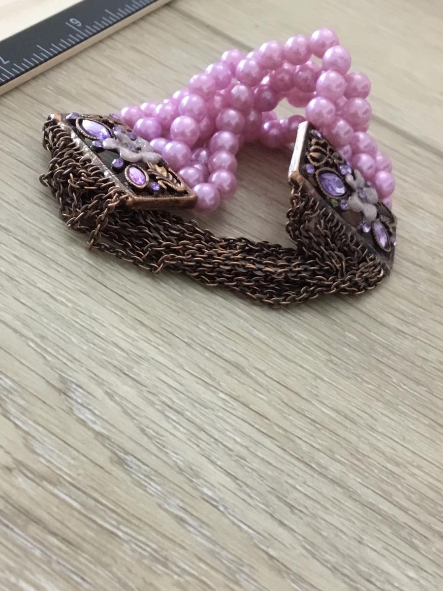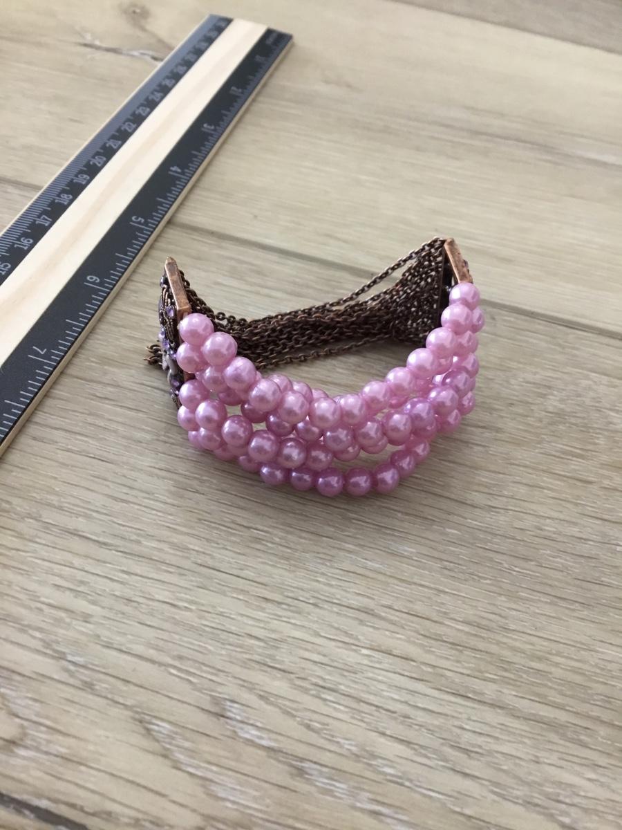 Bronze tone vintage pink beaded stretchy bracelet