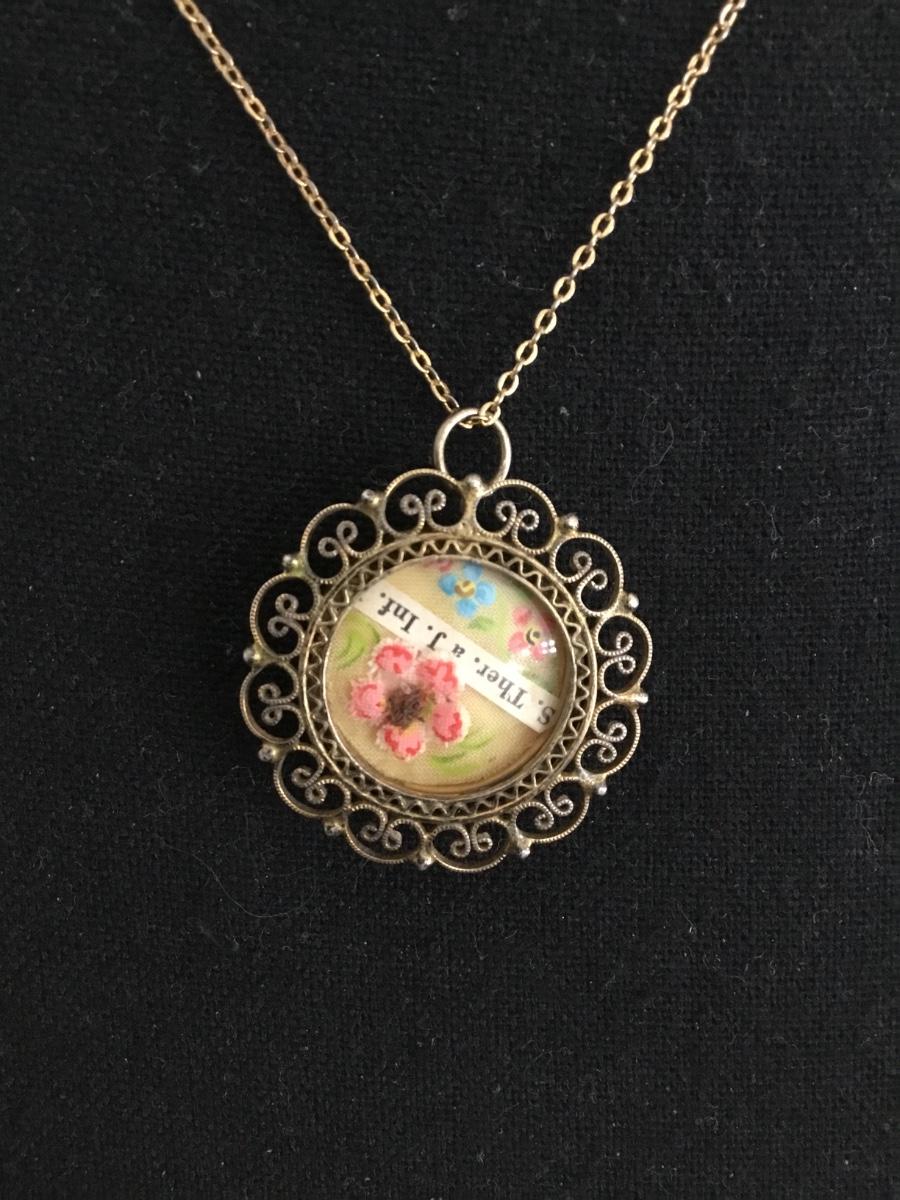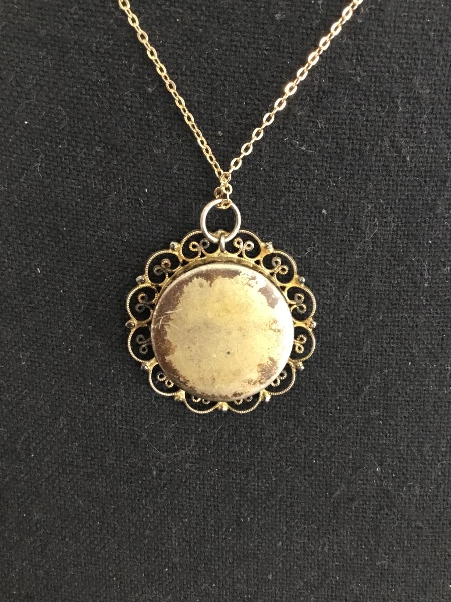 Bronze toned pendant with vintage chain necklace