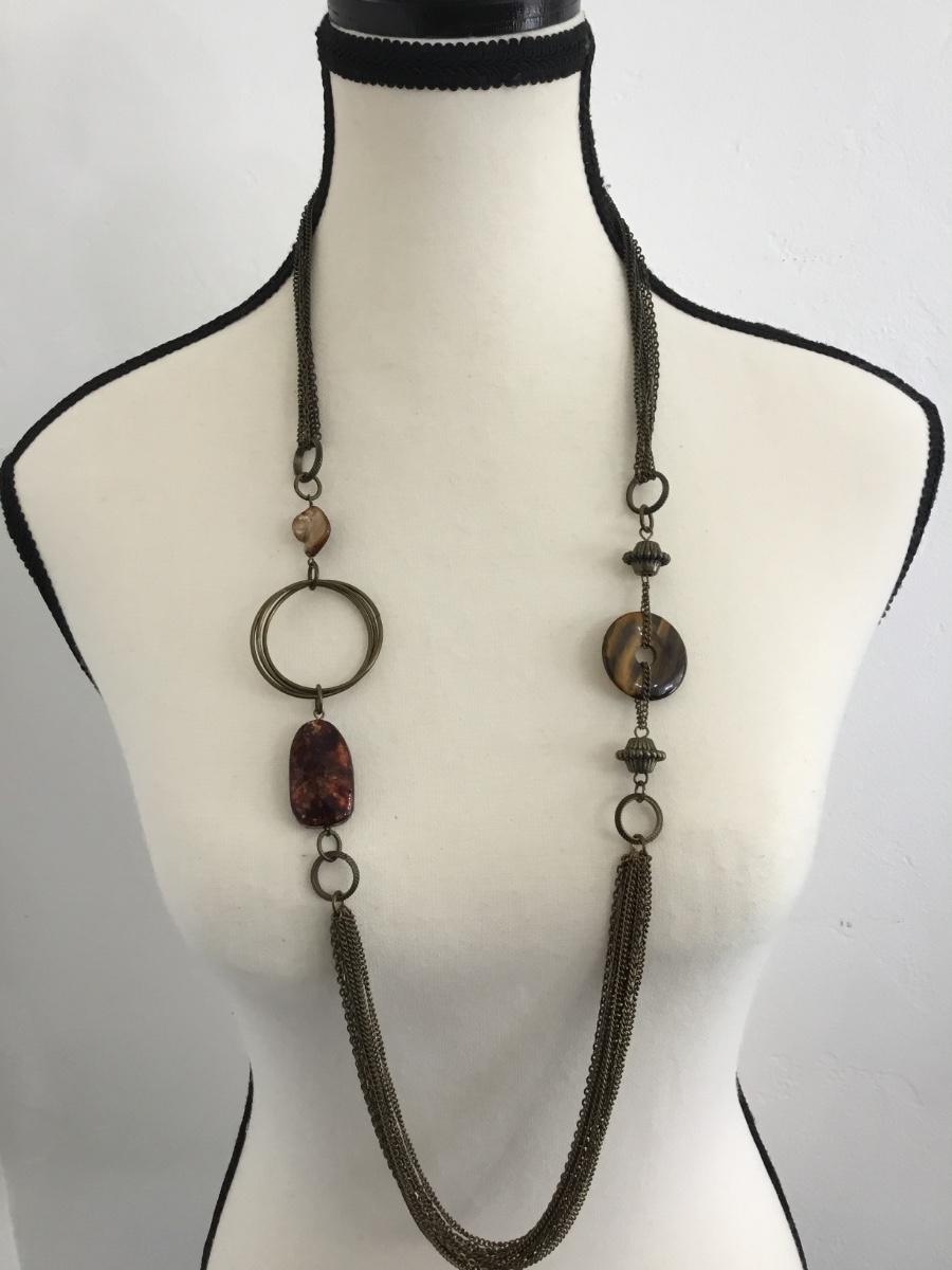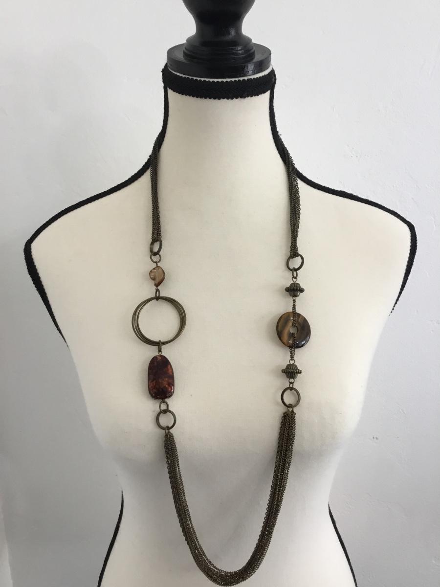 Bronze tones, multi, layered fashion, statement, necklace