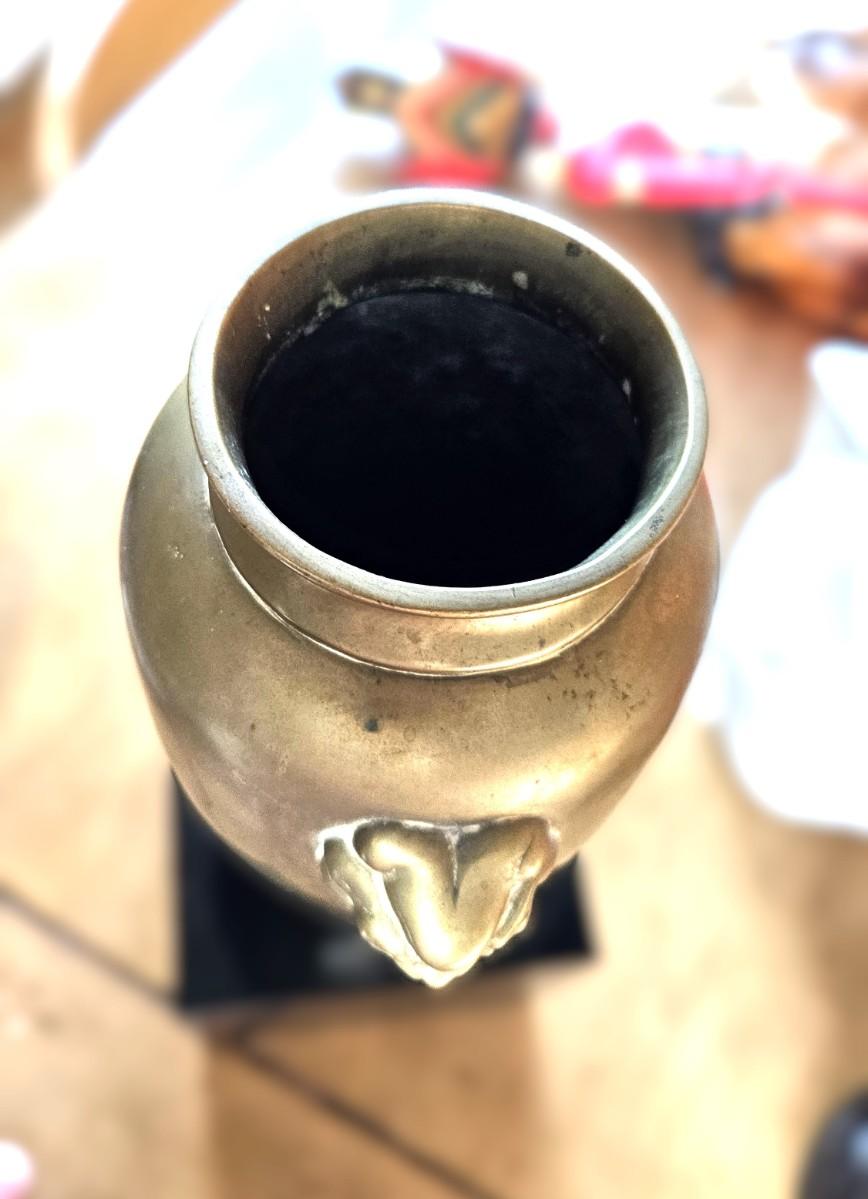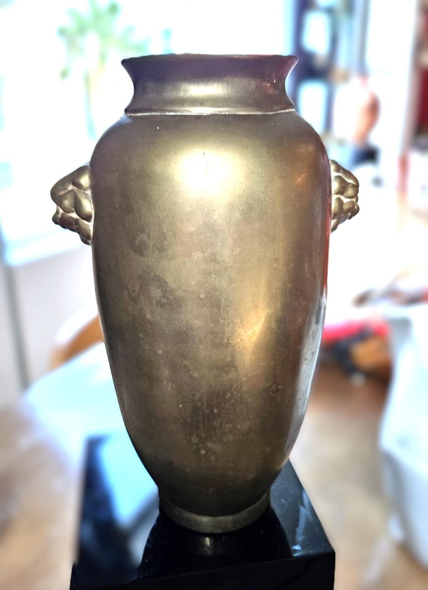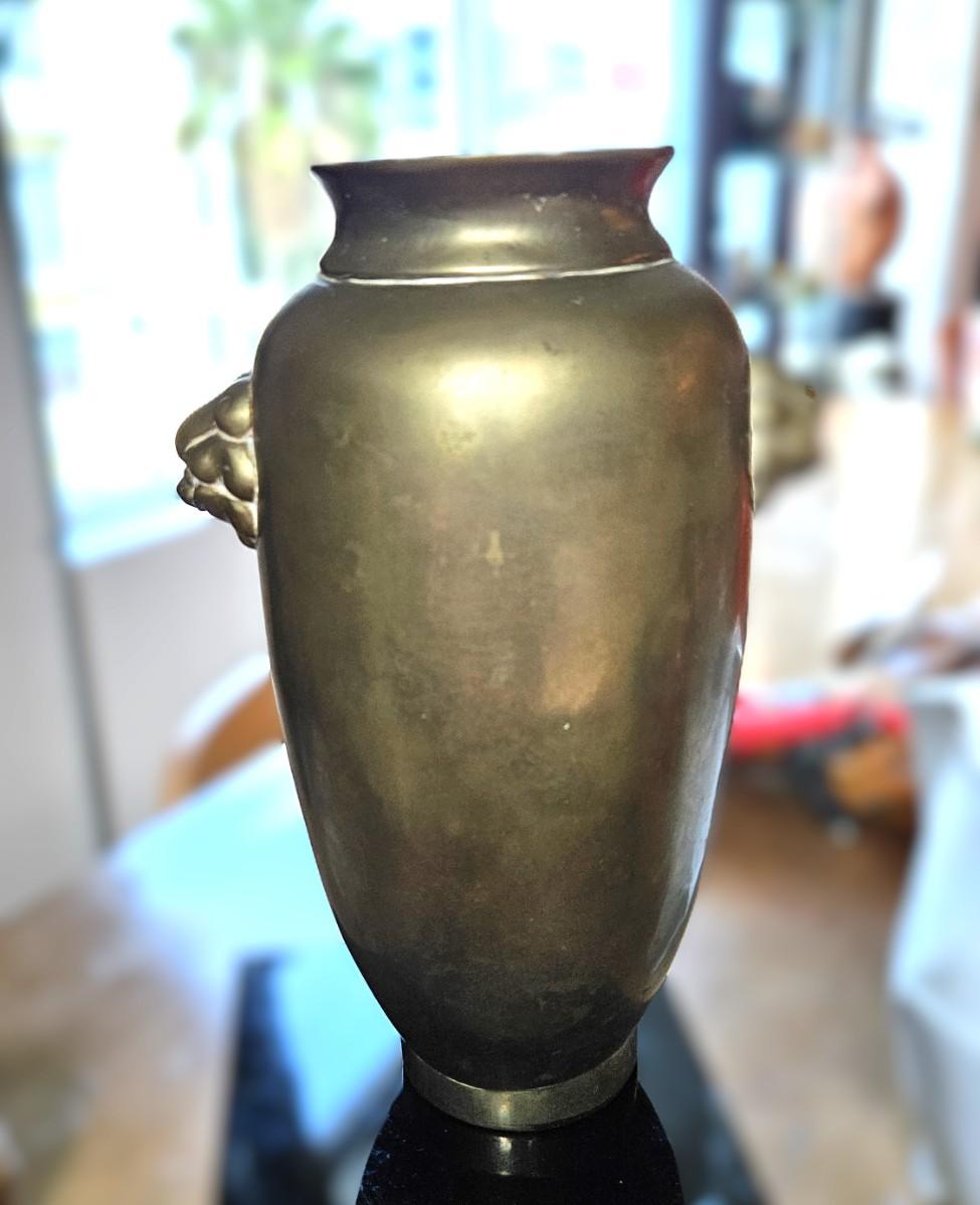 Chinese Bronze Vase with Lion Head Handles, 9H