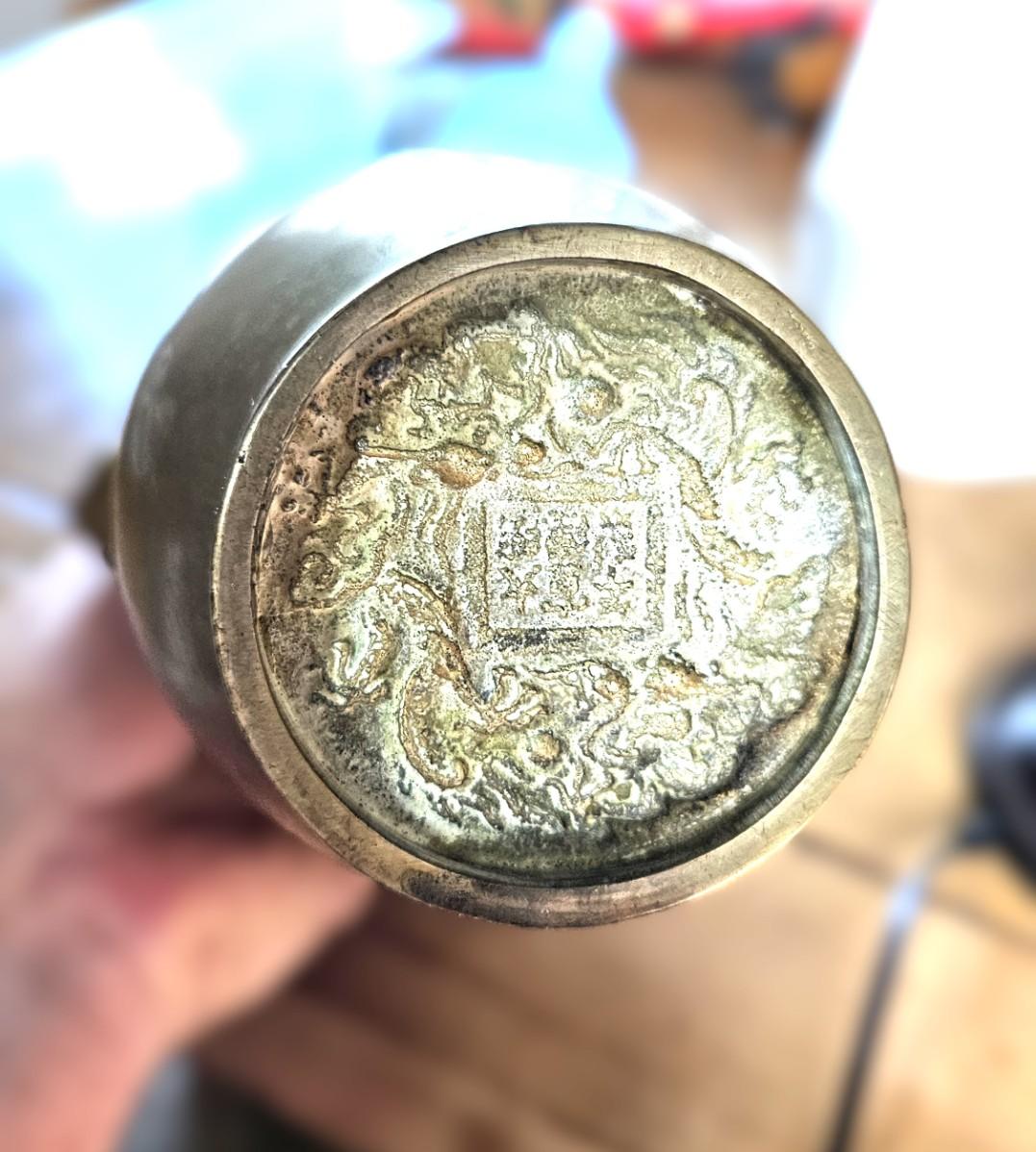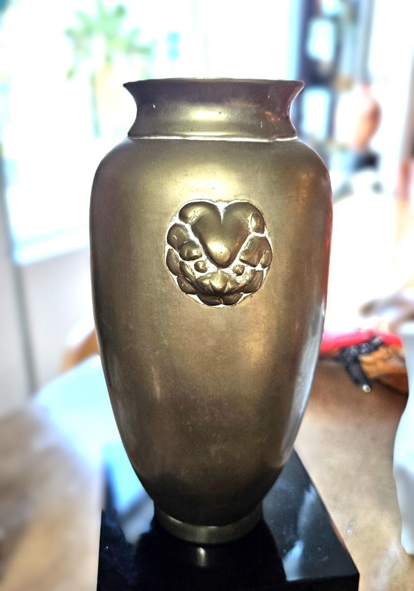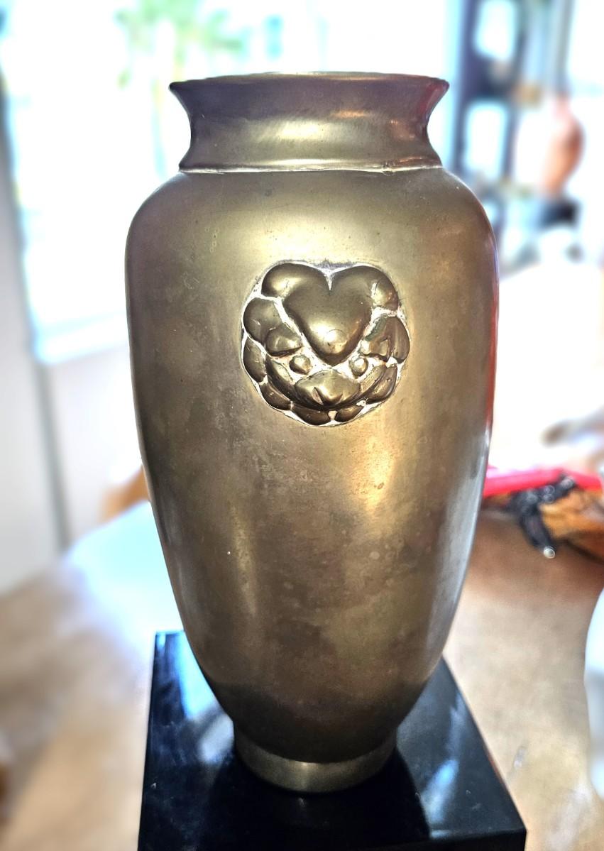 Chinese Bronze Vase with Lion Head Handles, 9H