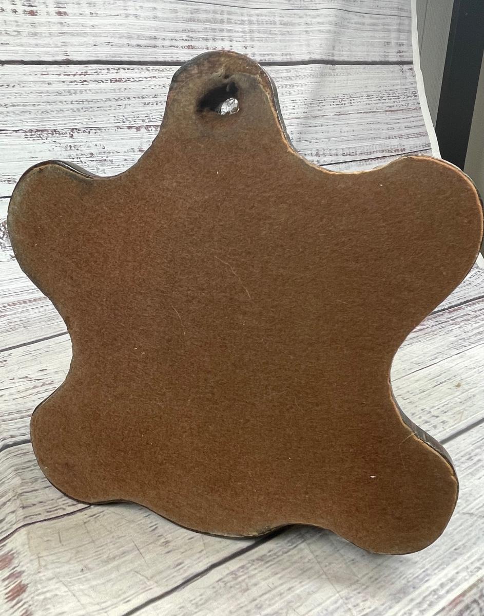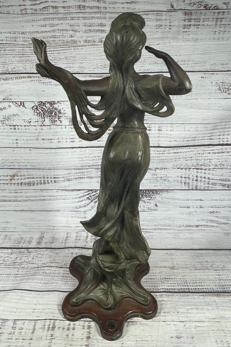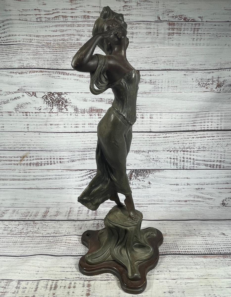 This sculpture is in decent condition. There are some discoloration and cracks on the item. This is a large item and it is quite heavy, it is approximately 22” tall.