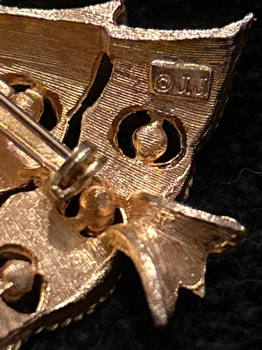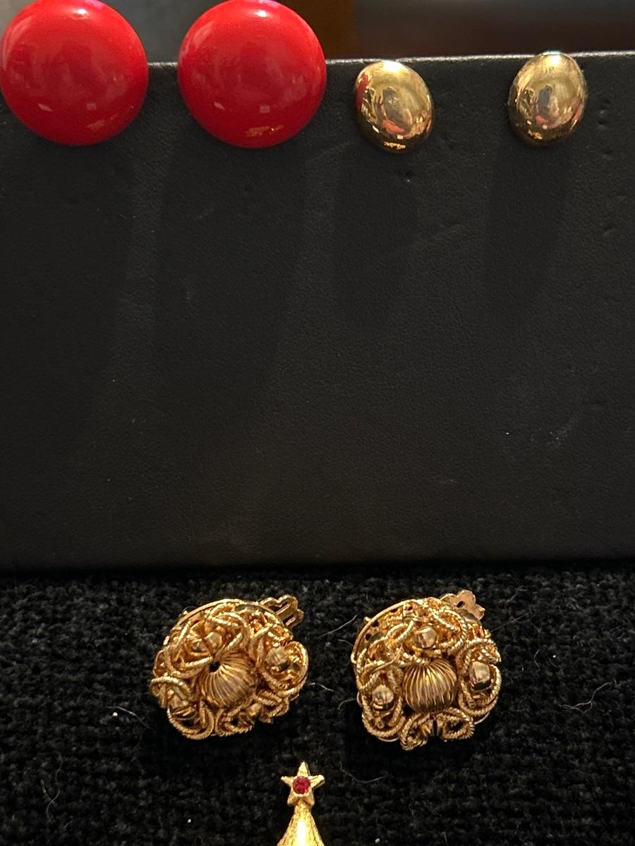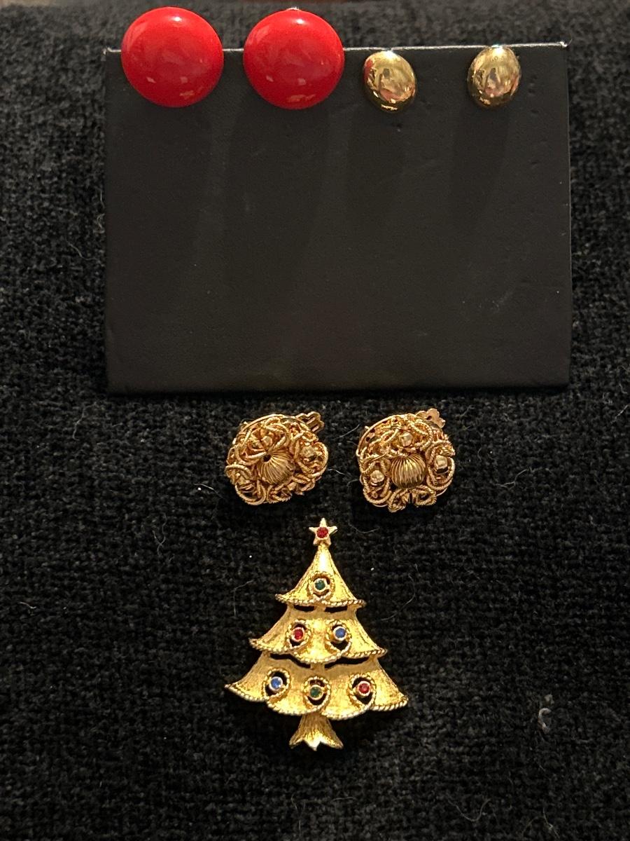The small ovals are pierced & the other 2 are clip. The brooch is JJ.