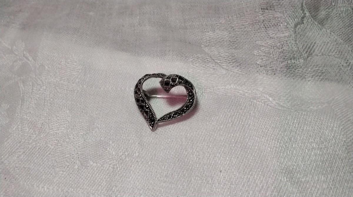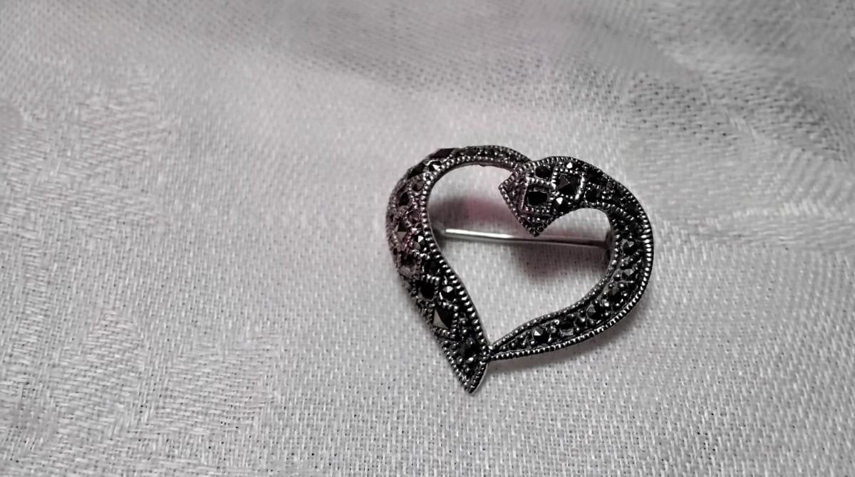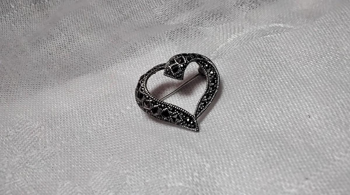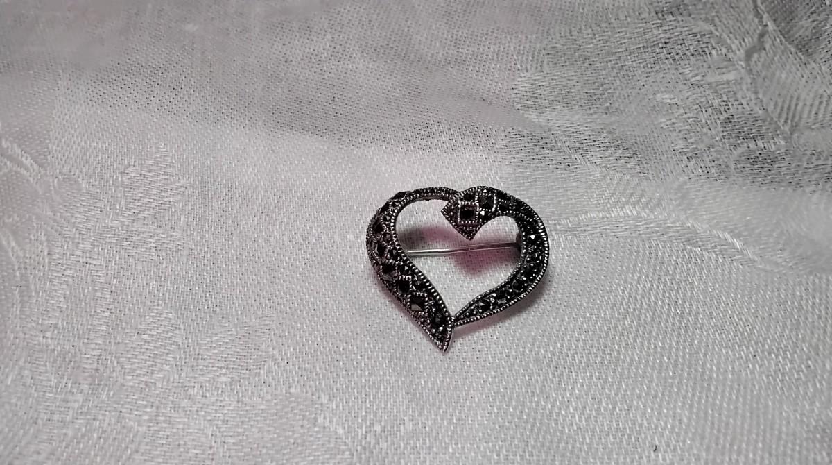 Vintage Classy Onyx and Marcasite 925 Brooch/Lapel Pin