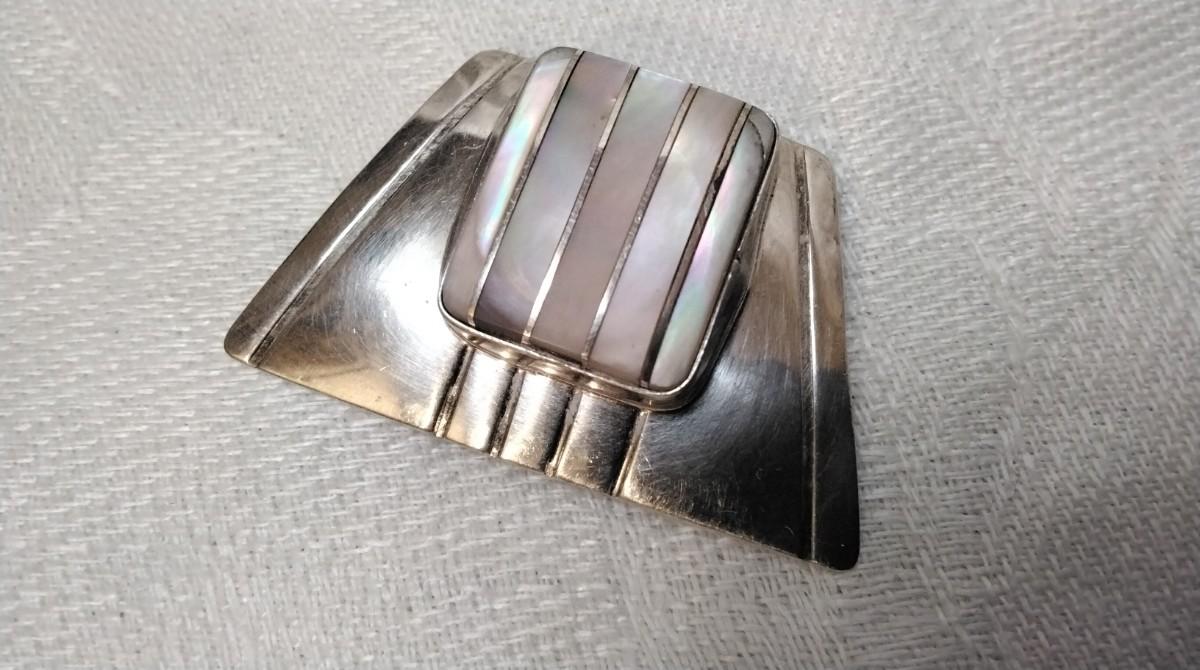 Gorgeous Mother of Pearl 925 Navajo Made Brooch