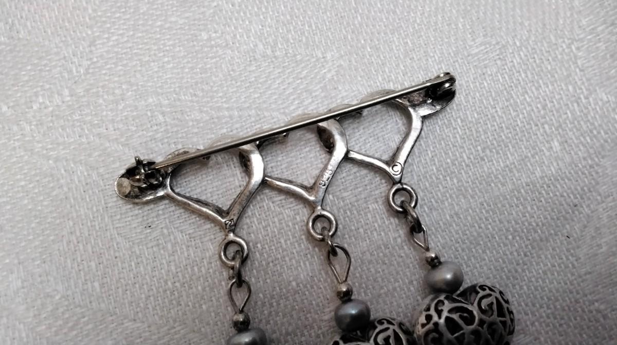 Brooch made to dress up any outfit! There is a makers mark but we don't recognize it,